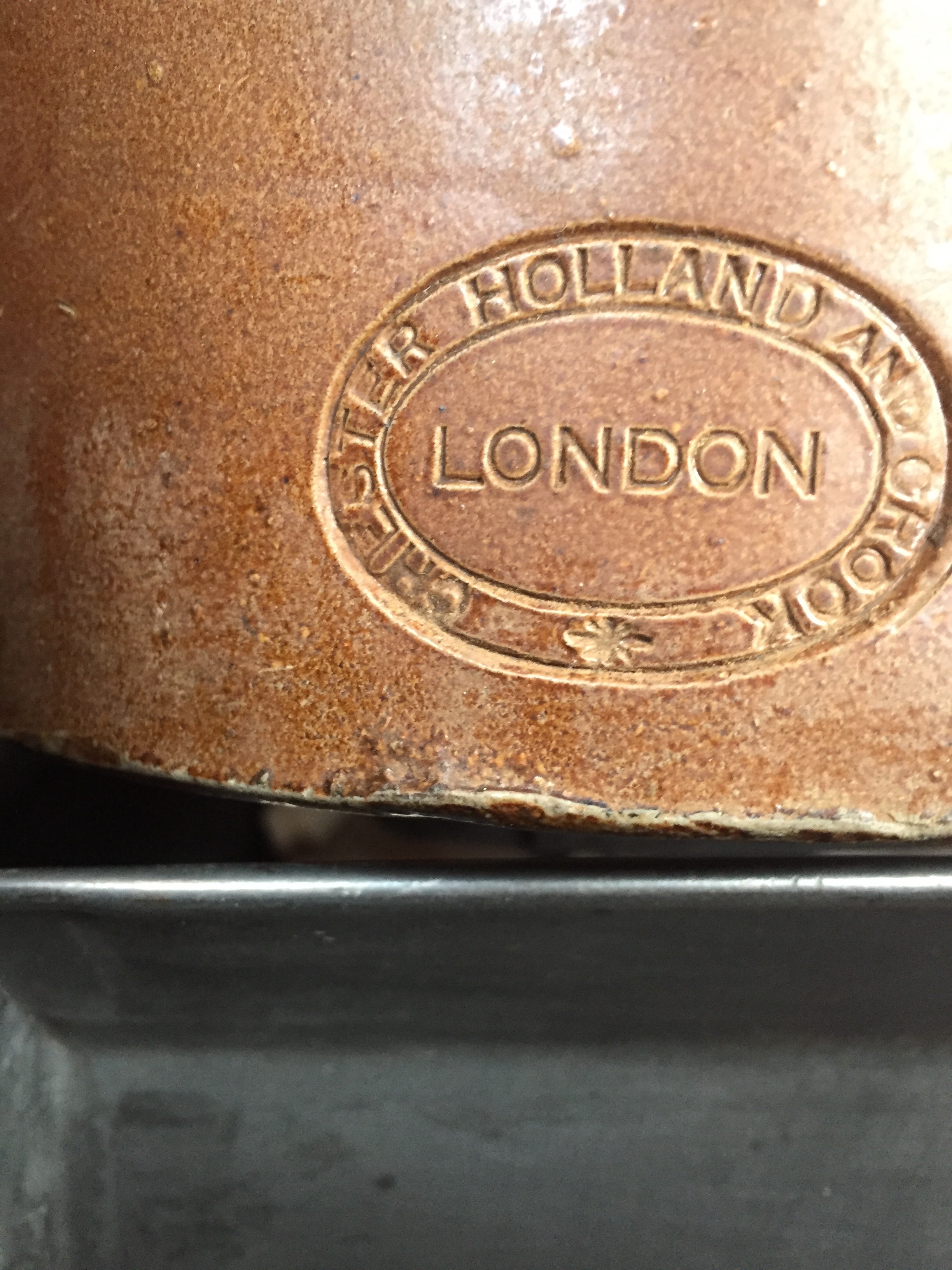 I picked a 40cm tall brown stoneware jug stamped with Chester Holland and Crook of London. It is in really good condition but doesn't have a lid. I can find anything about this company on the Internet and was hoping someone could help.