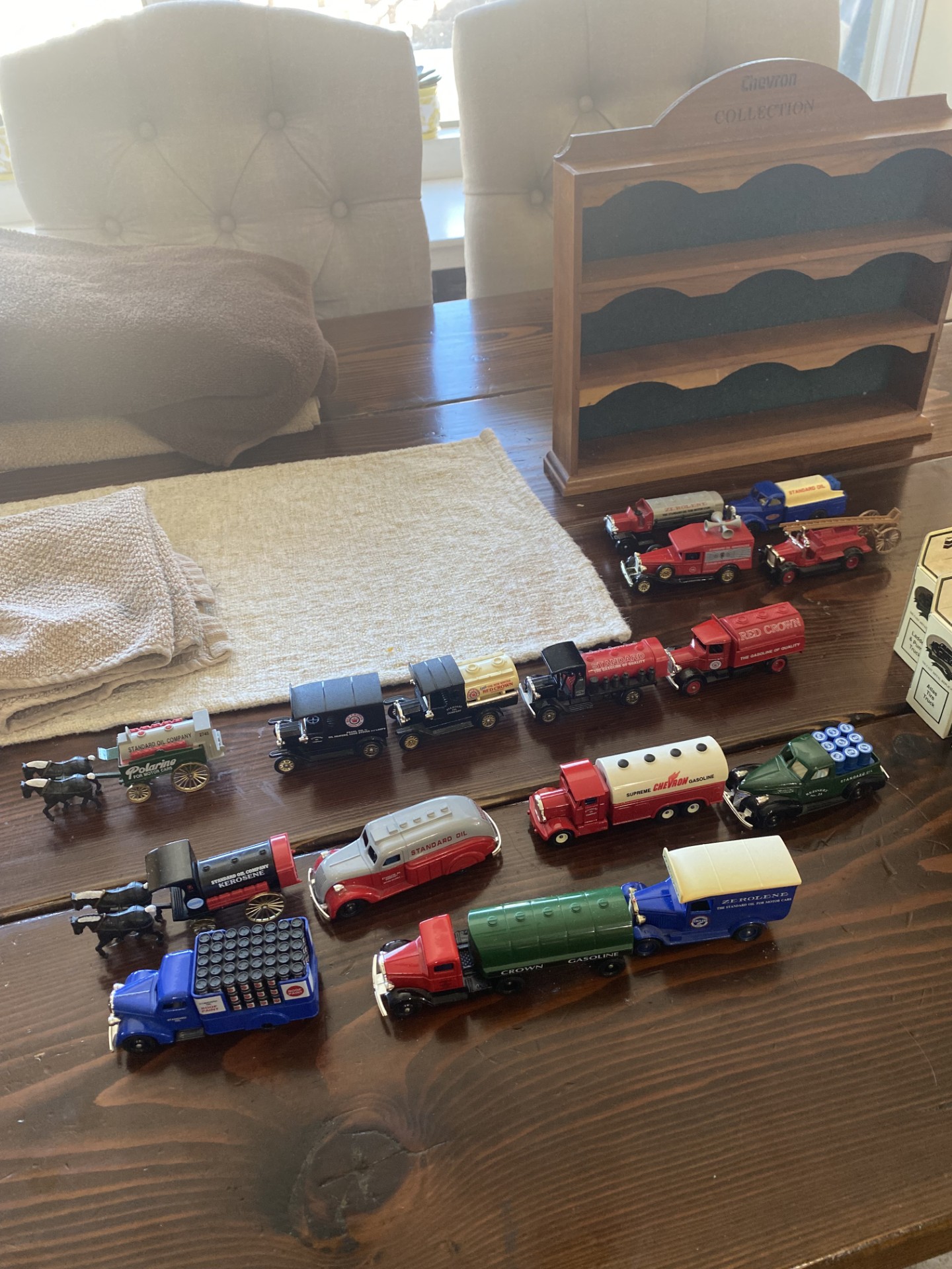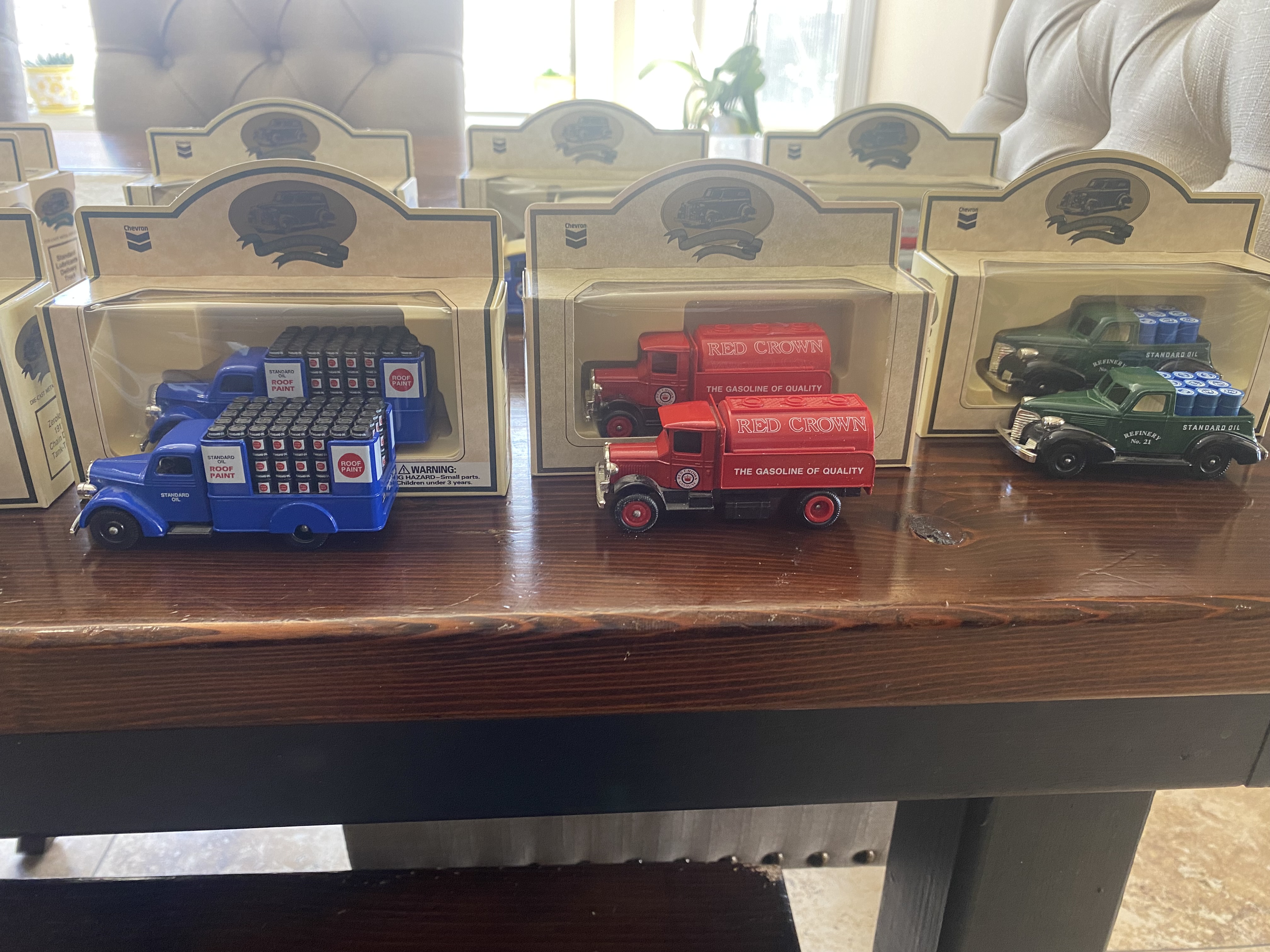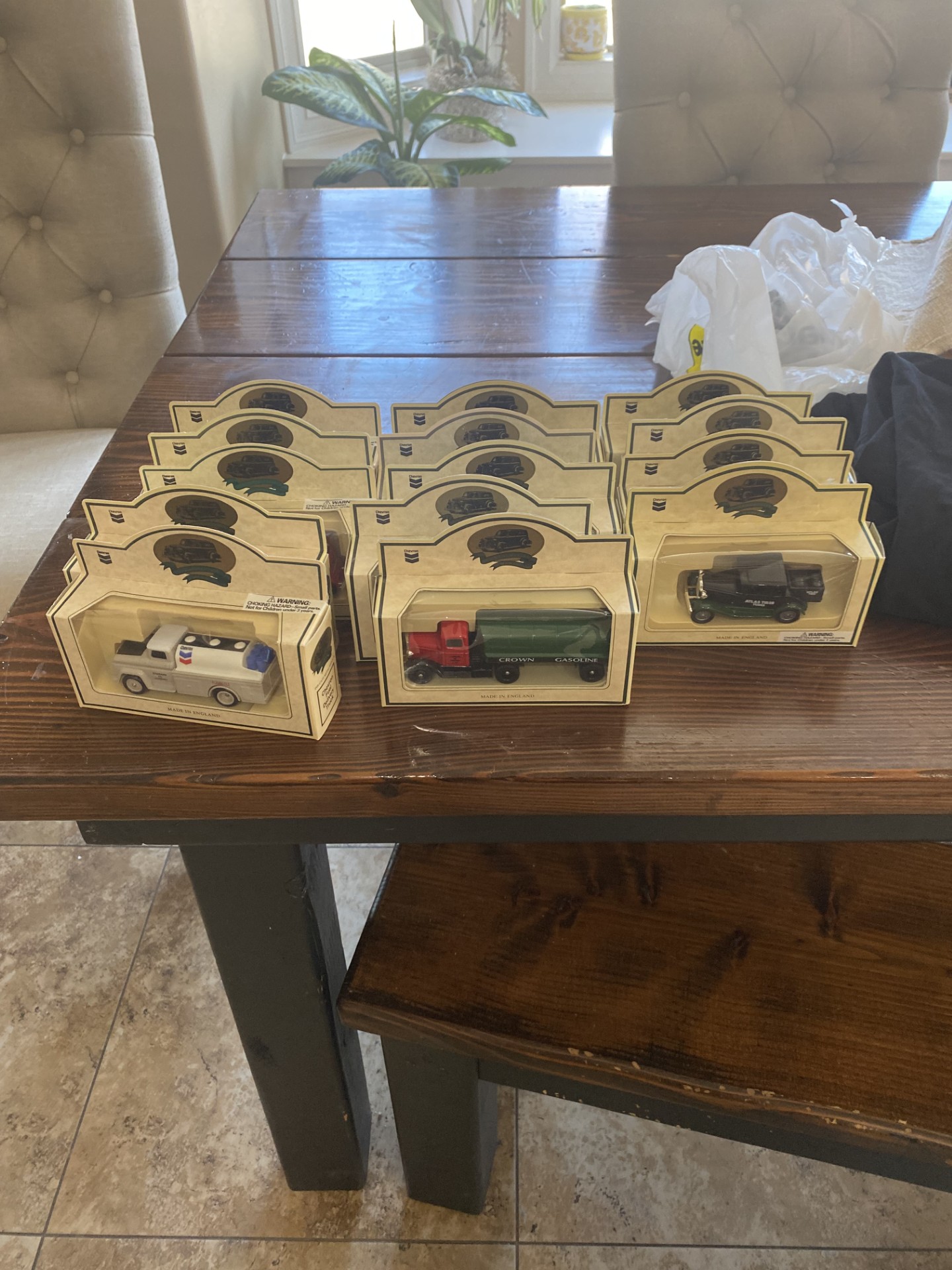 Description 46 Chevron collectible cast iron toy cars Made in England 16 duplicates with both in boxes 11 duplicates with 1 of each in a box and another out of the box but in great condition 3 more in boxes and 5 others with no boxes
