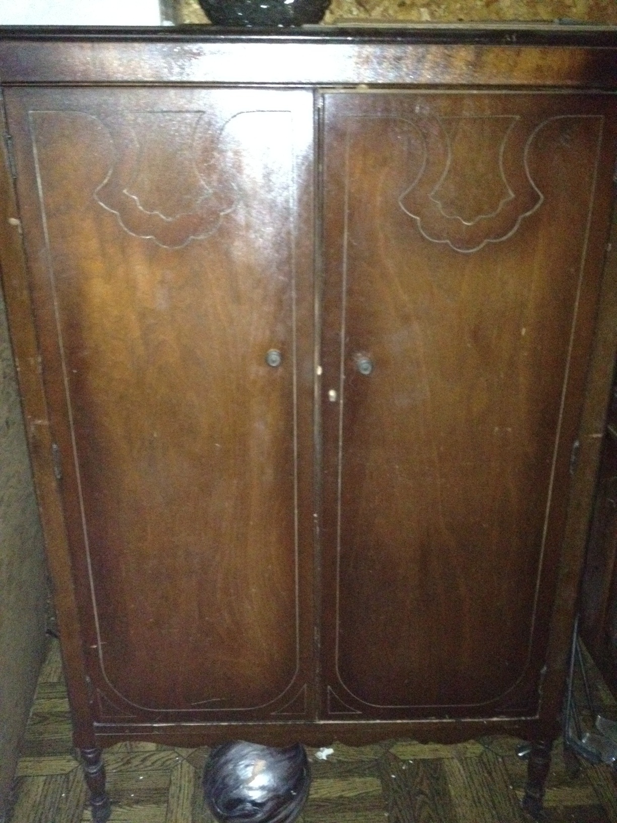 I am looking for information on this chifferobe. It belonged to my grandmother. One side has a bar for hanging clothes and the other side has three drawers and a shelf. I would like to know approximately when it was made and an idea of an estate sale value. Thanks.