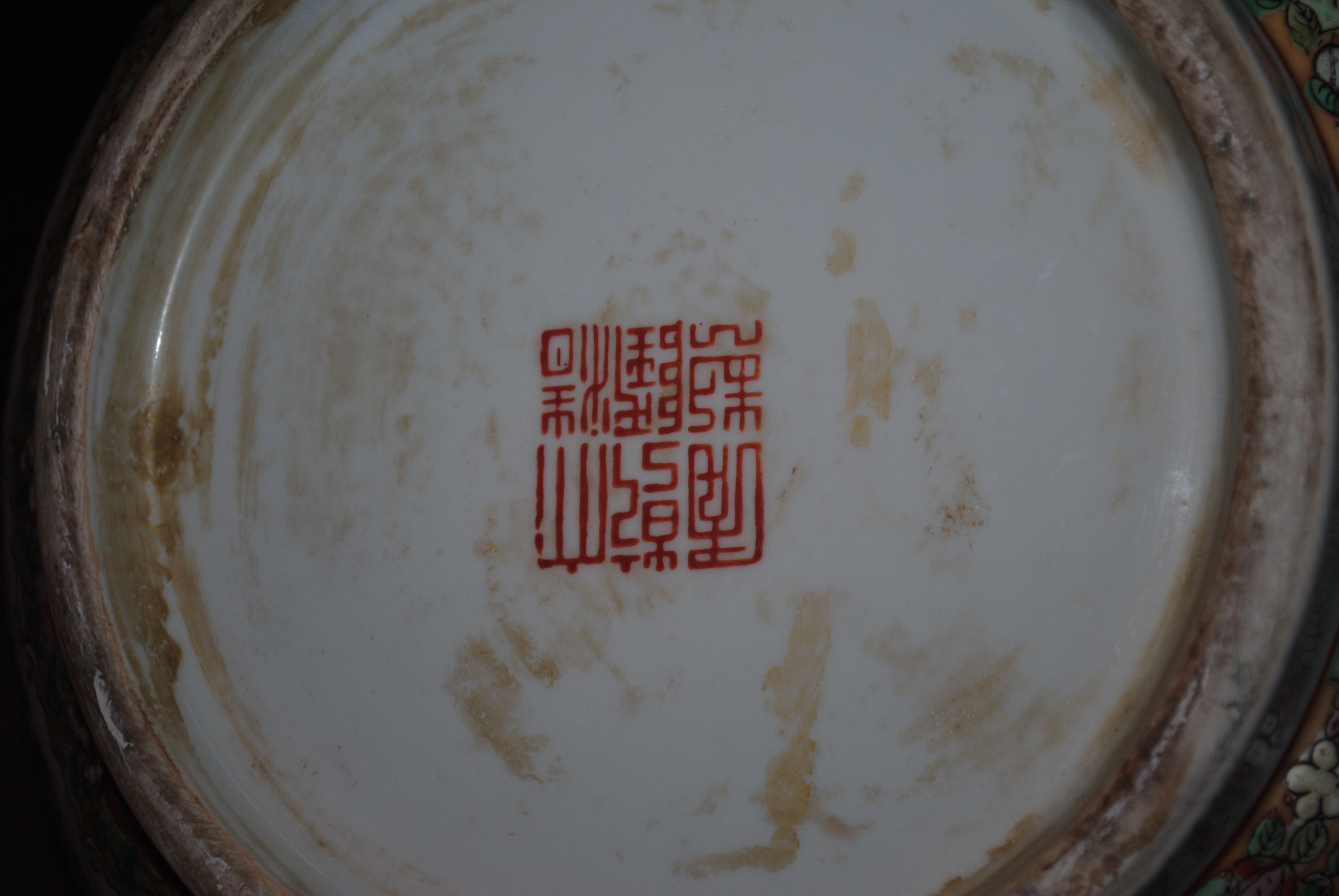 Distinguishing marks a red hand painted chinese symbol on the bottom