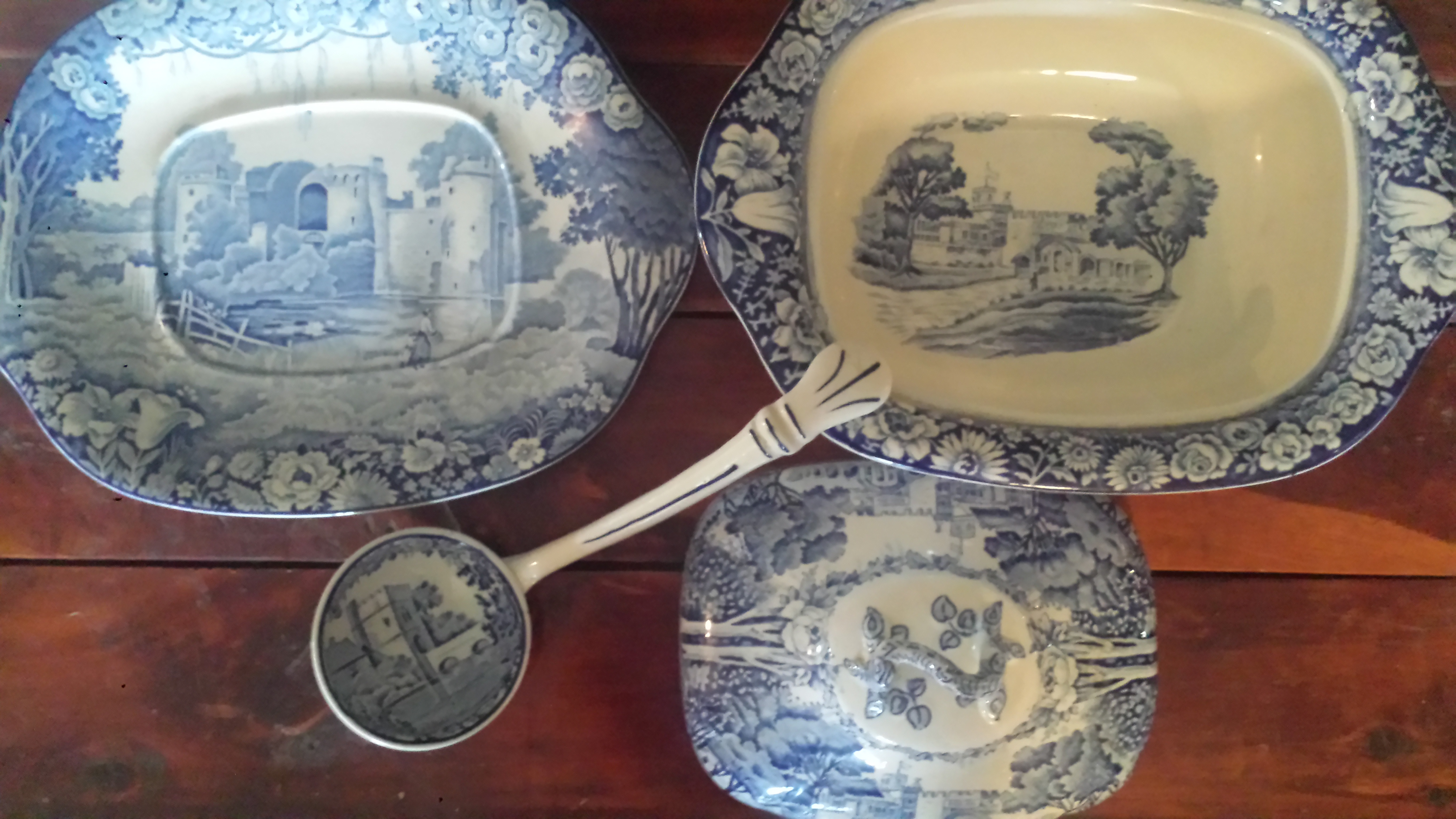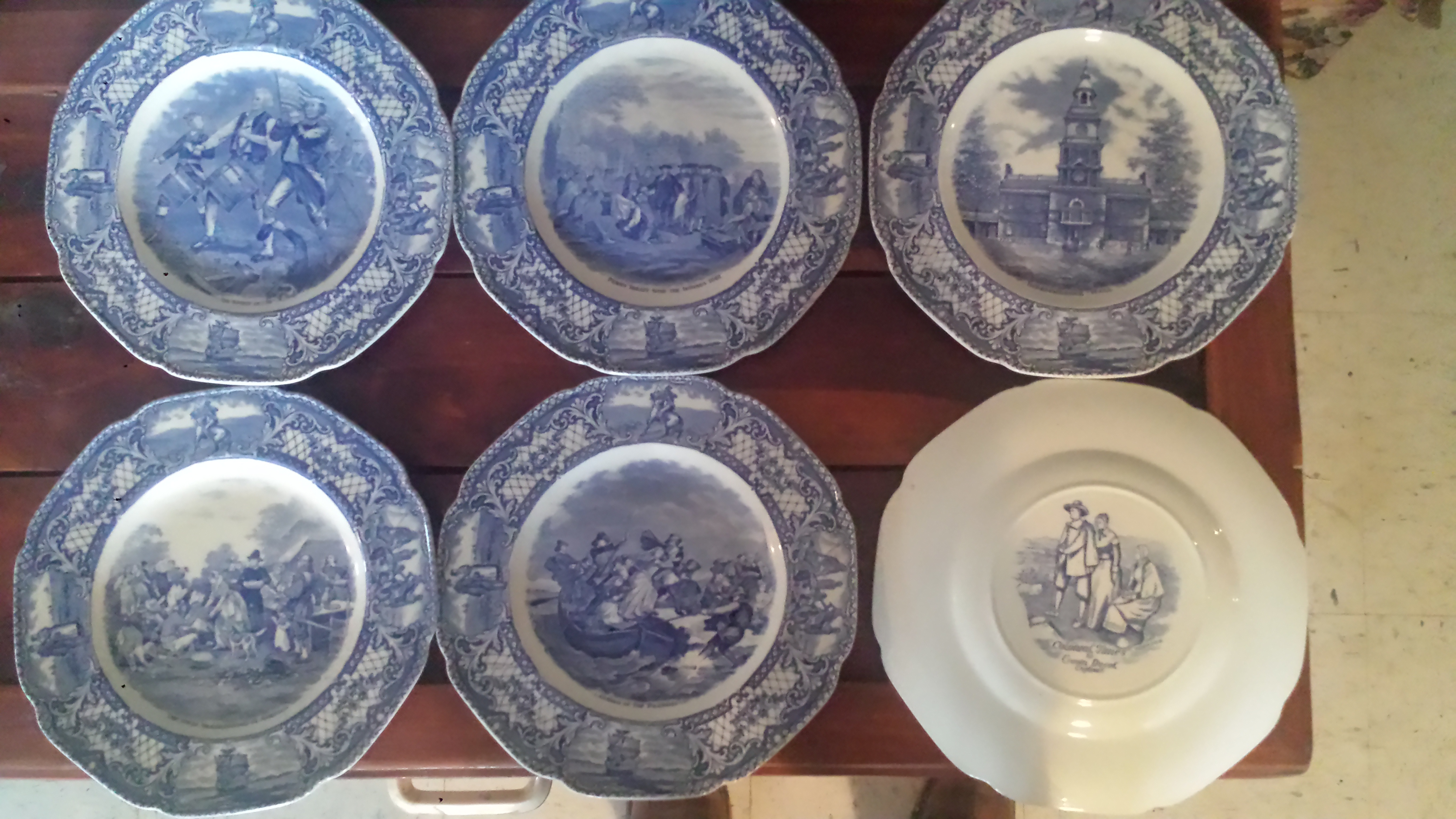 Plates are crown ducal colonial times. Serving bowl is enoch woods castles. All have been in China cabinet since 1962