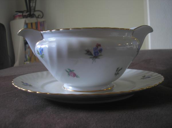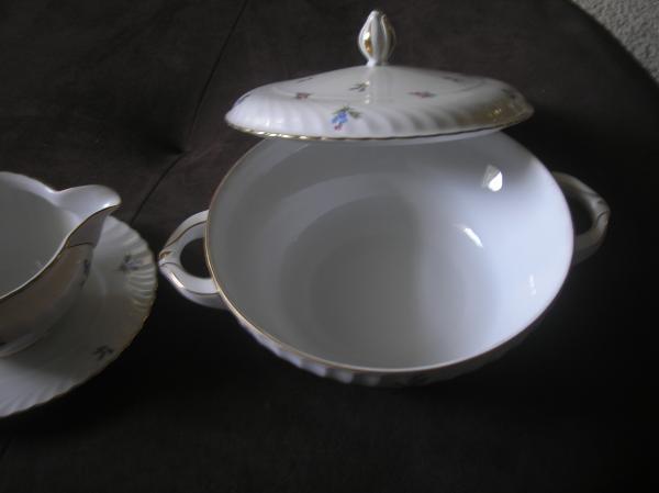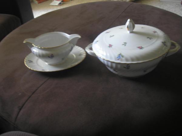 Description The set is quite large. Anywhere from 60-80 pieces. It consist of: Large bowl with lid,Dinner Plates, Saucers,Gravy Bowl,cups,small bowl with lid, Platters,etc.