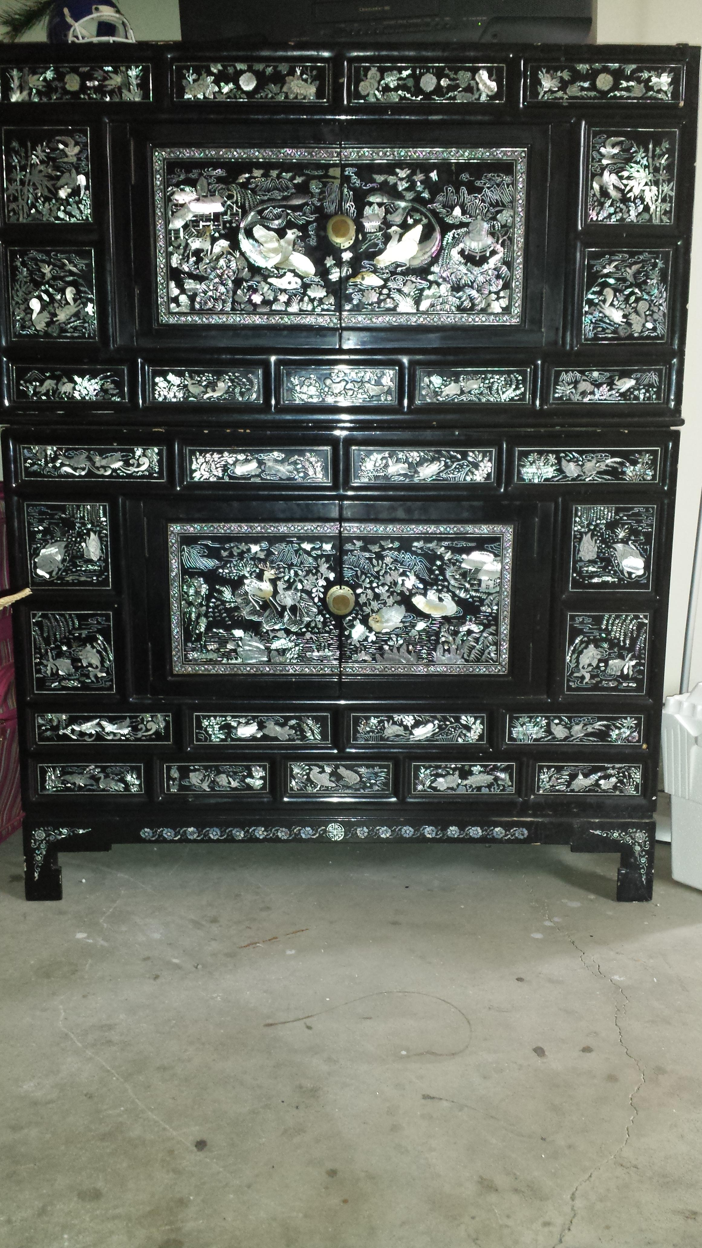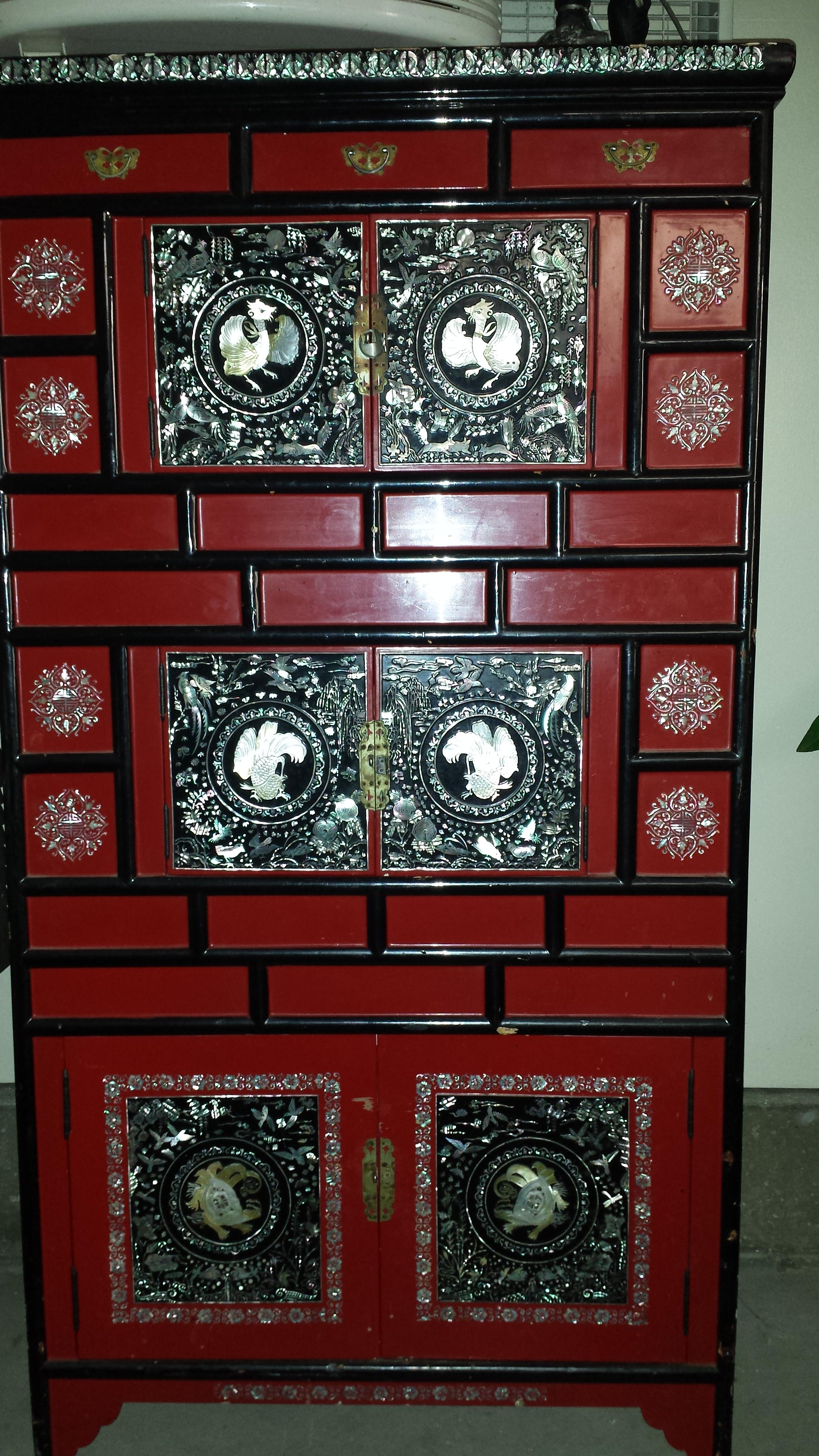 CHINA ANTIQUE CABINETS INLAID MOTHER OF PEARL BLACK AND RED LACQUER