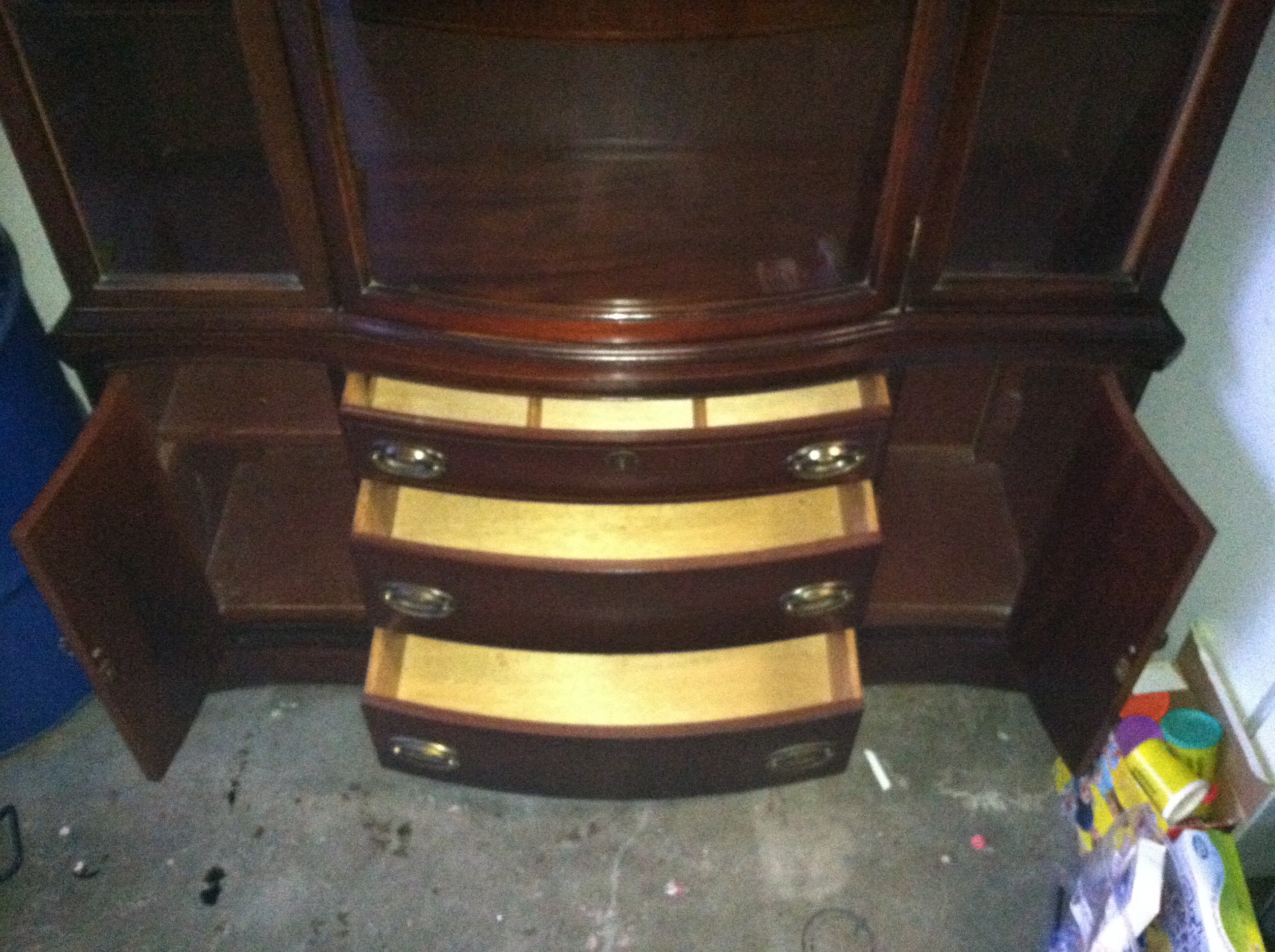 Curved glass front door three drawer bottom with two Side doors six foot tall