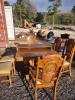 Item is dark in color. Has two glass doors on top inside these doors are two wood shelves.There is a skinny drawer in the middle of cabinet that has the metal Landstrom Logo and a seperate area below with two wooden doors, that has a shelf inside.
