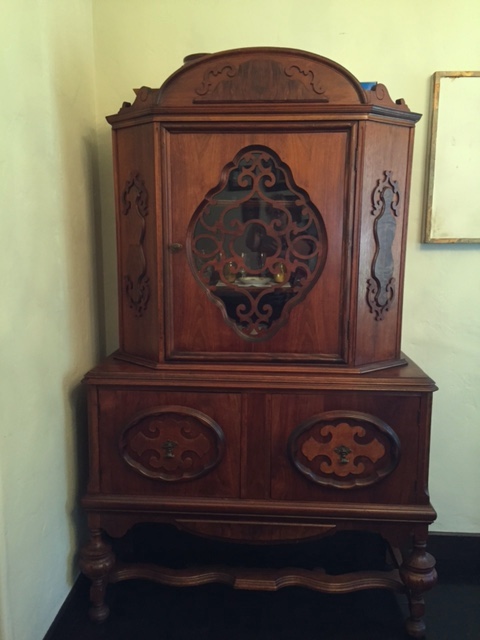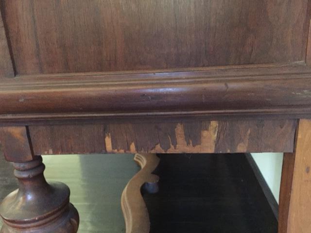 Tne china cabinet had one of the back leggs broken but has been fixed.