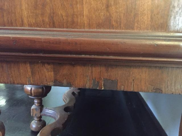 I bought this beautiful set 16 years ago: a china cabinet and a buffet. The pieces are wood with wood veneers. I guess is dating from the begining of 20th century.