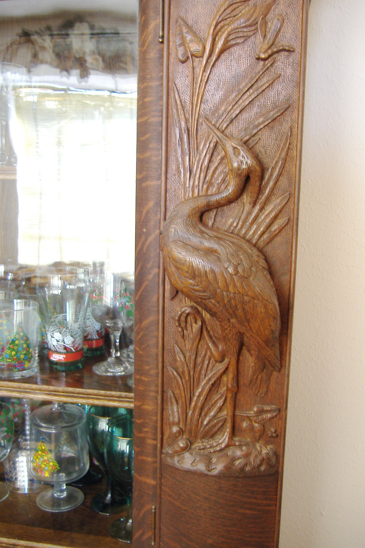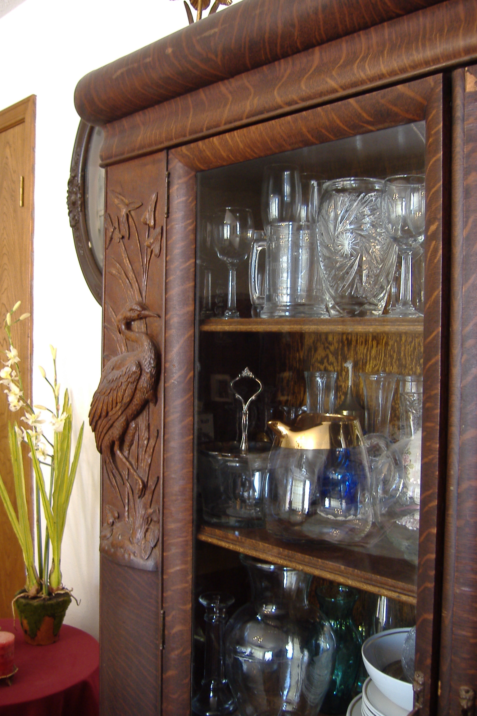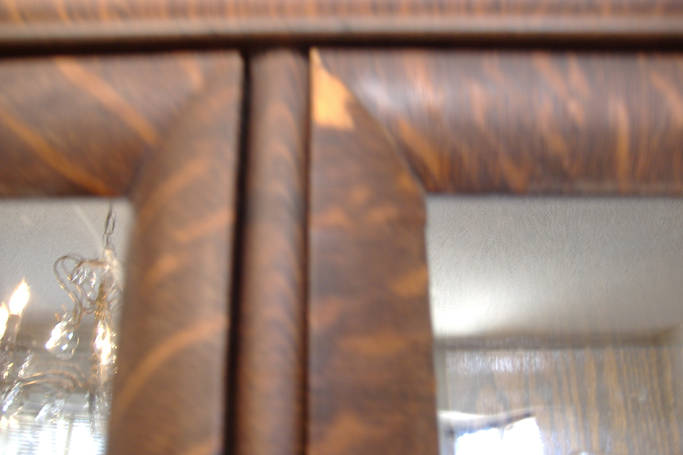 Large China Closet manufactured by Forest City Furniture Co., Rockford, ILL per manufacturer's tag still on the back of the unit. In excellent shape with a couple of small places where the veneer is loose or missing. 3 doors with original glass.