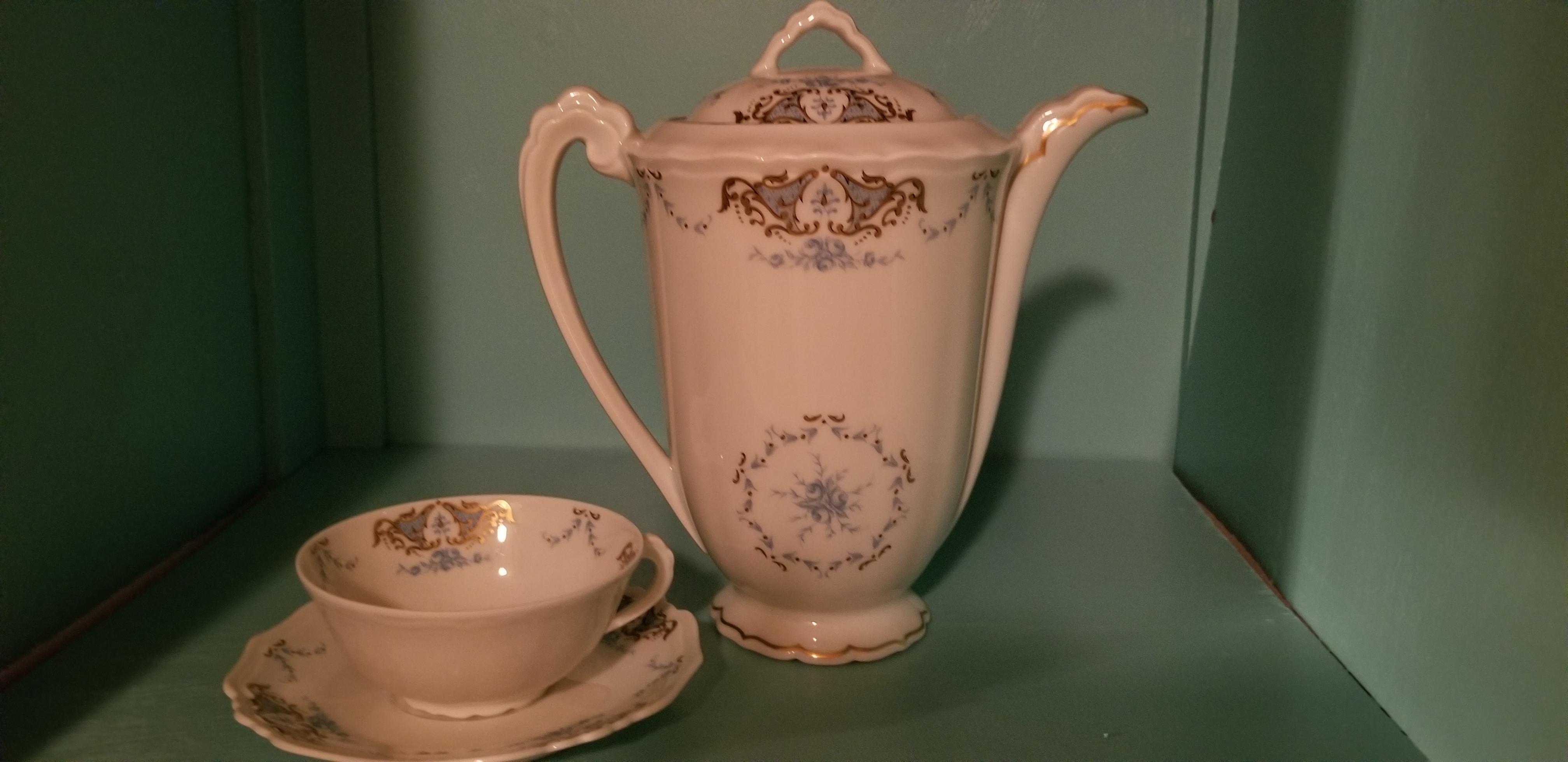 The marking on this set was used by this company post 1950, so the set is not considered an antique. No big value in the current market, the demand for Limoges porcelain last peaked during the 1990's..Most comparable sets go for less than $150.00.
