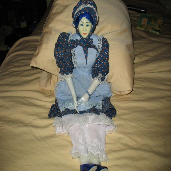 beautiful china doll, excellent condition with blue painted braclet.