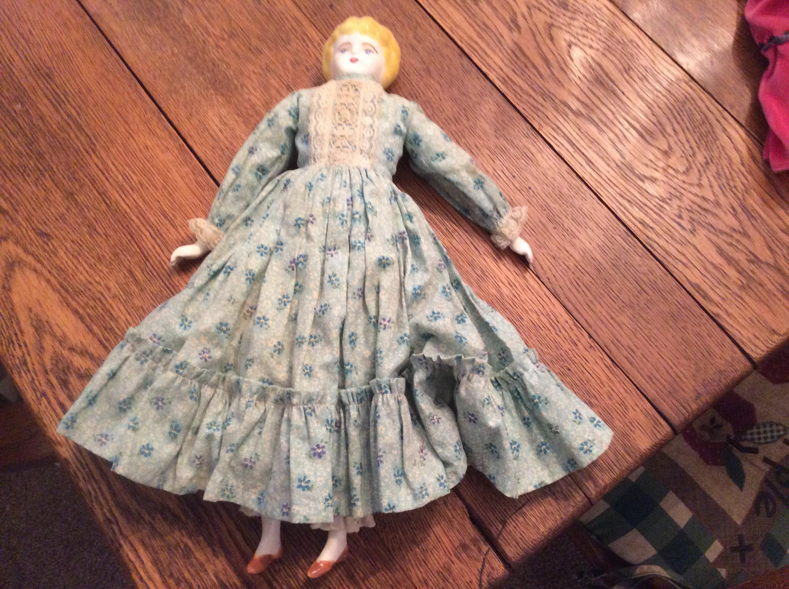 Your China doll is home made, possibly by your grandmother or someone she knew. Many times these are marked with the makers initials on the back. It was very popular between the 1960's thru 1980's for women to make porcelain and china dolls in ceramic classes. Hope this helps.