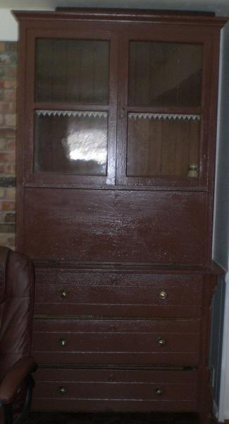 This is a family heirloom from Germany. It has been in the family at least 150 years, but I'm not sure the exact date when it was built. It was built by an individual, so there are no company markings or signature. The inside of the fold-out desk is the only part of the piece were nails were used. The rest was built using notches and wedges. I'm not really interested in selling it, but I would like to know if it is worth anything.