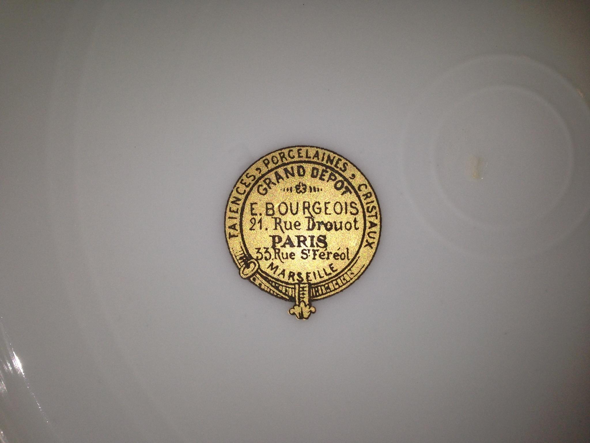 On the back, marked with a gold seal: Grand Depot, E. Bourgeois, 21 Rue Drouot, Paris