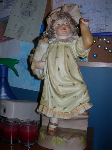 My mother, who is 65, got this statue from her grandmother. I don't know what it's made of, but it is hollow. Some sort of glass or ceramic I suppose, possibly porcelain.