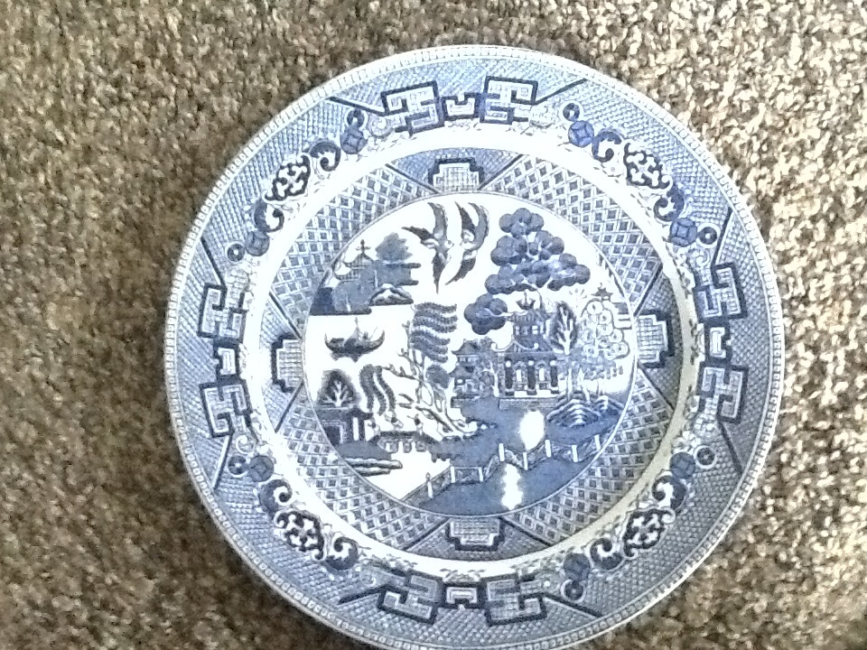 blue and white semi china plate made in 1832 it is # 1 of 20 stamped made in England also was made w . Ridge way and company was made for them
