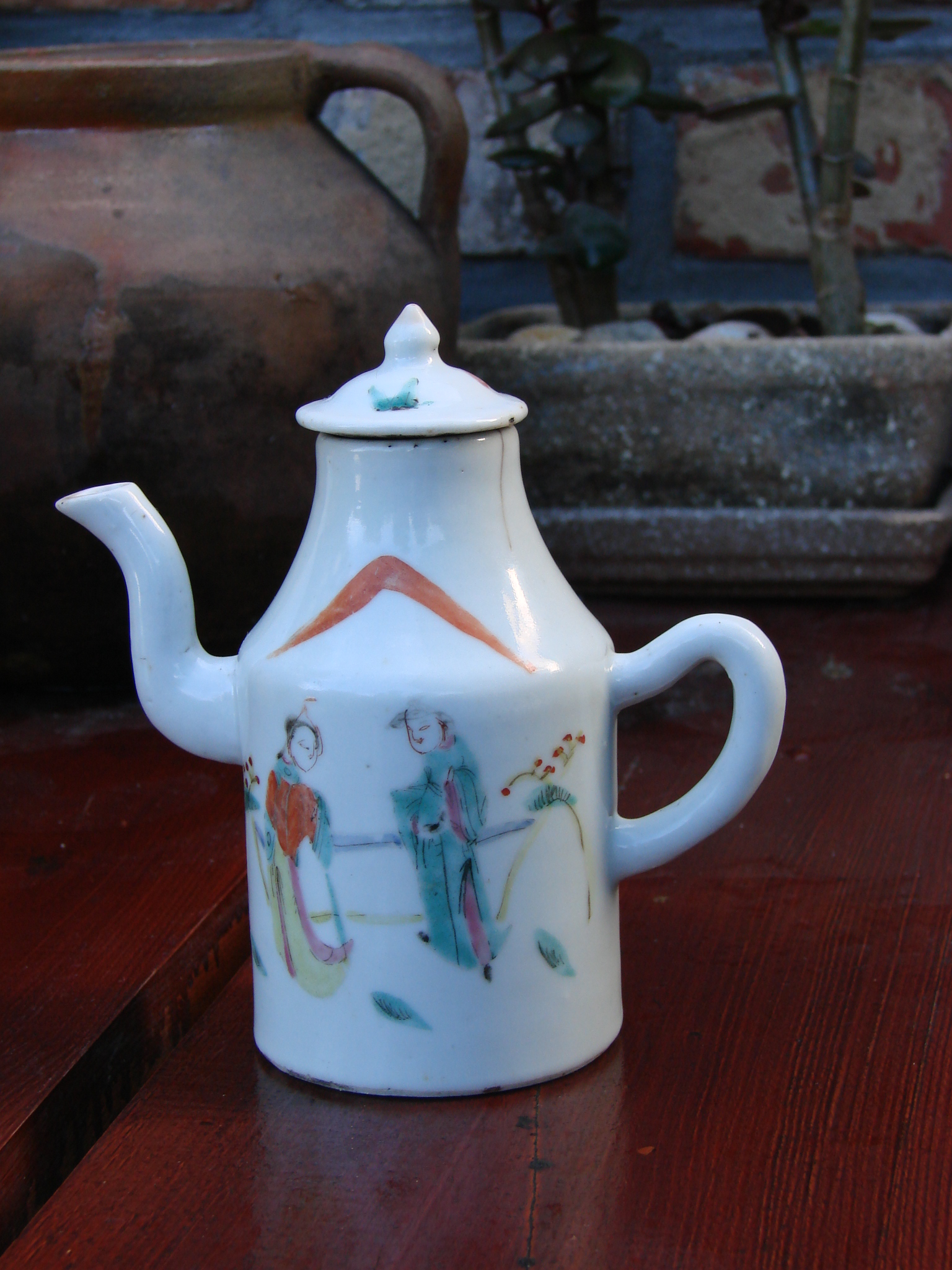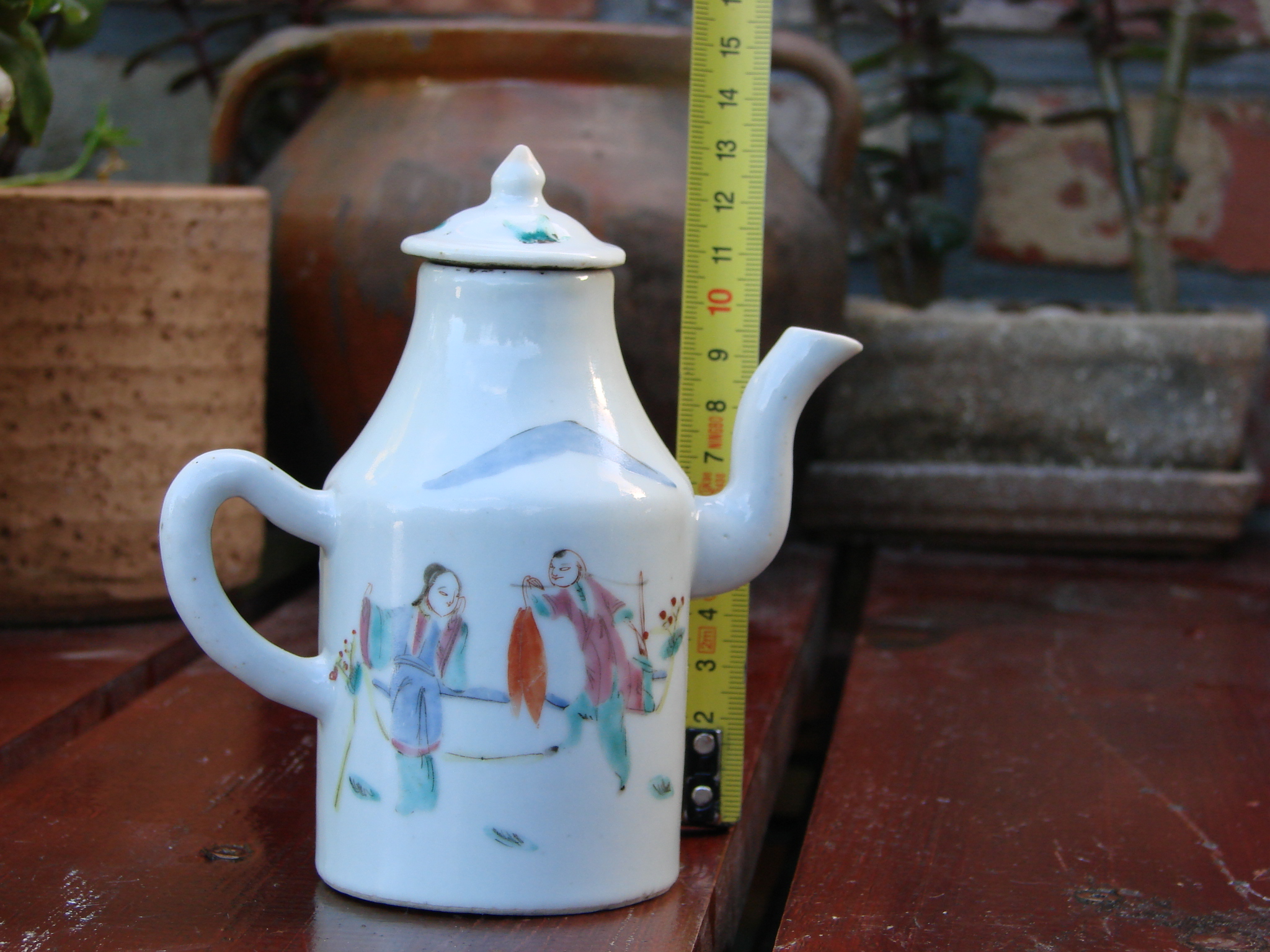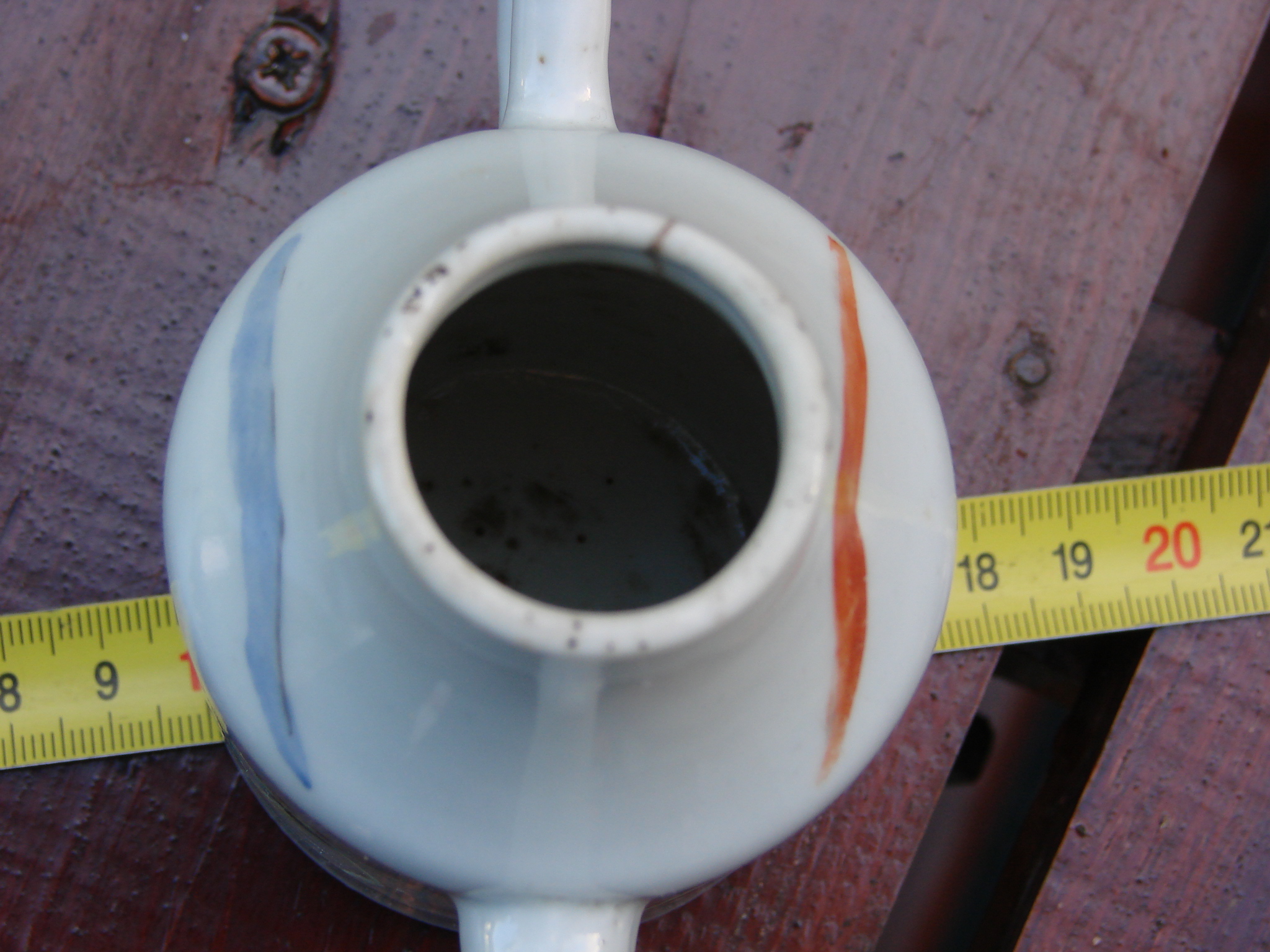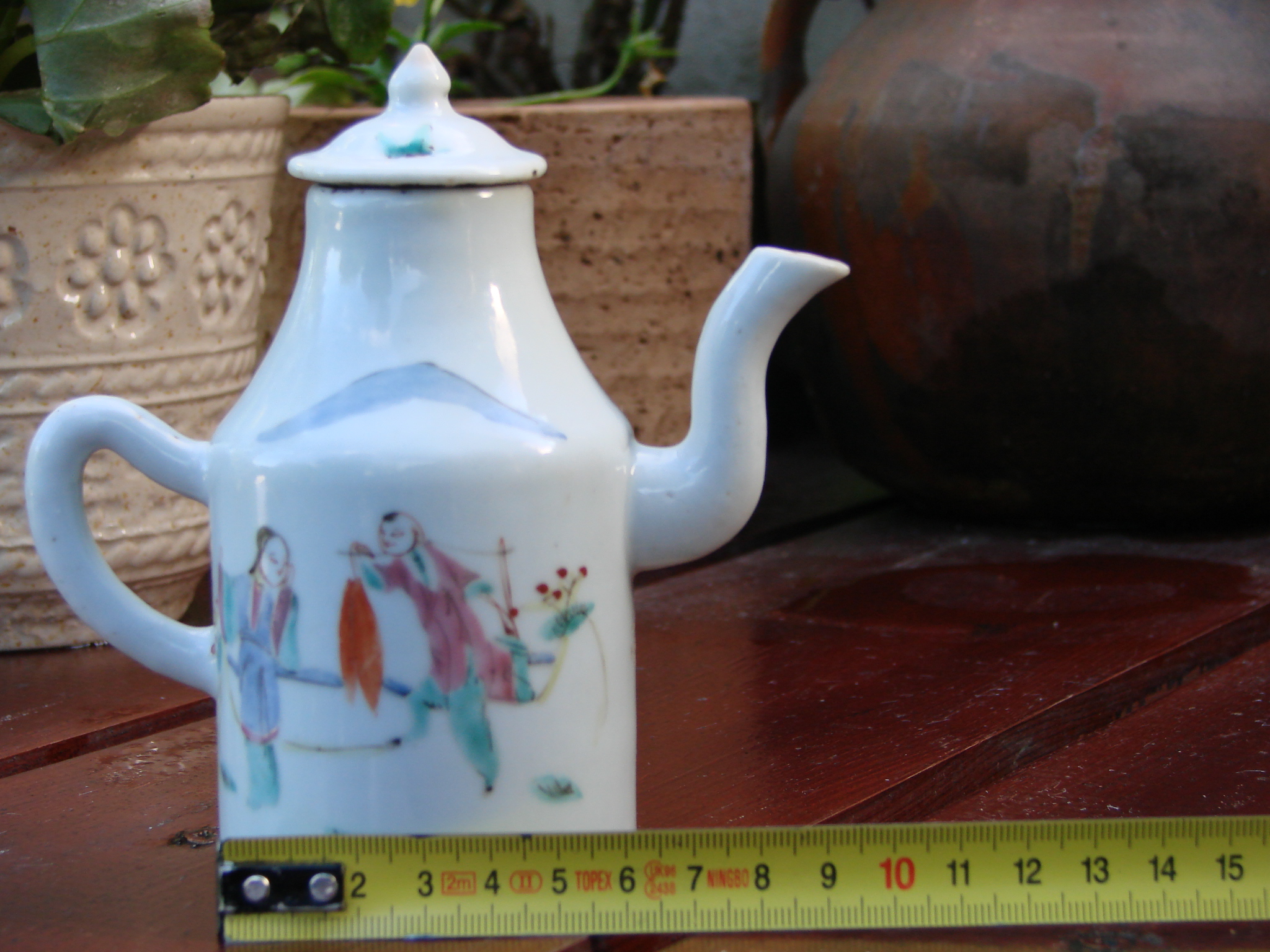 China teapot, over 100 years in our family ( at least since 1914) . Ruler in photo in centimetres.