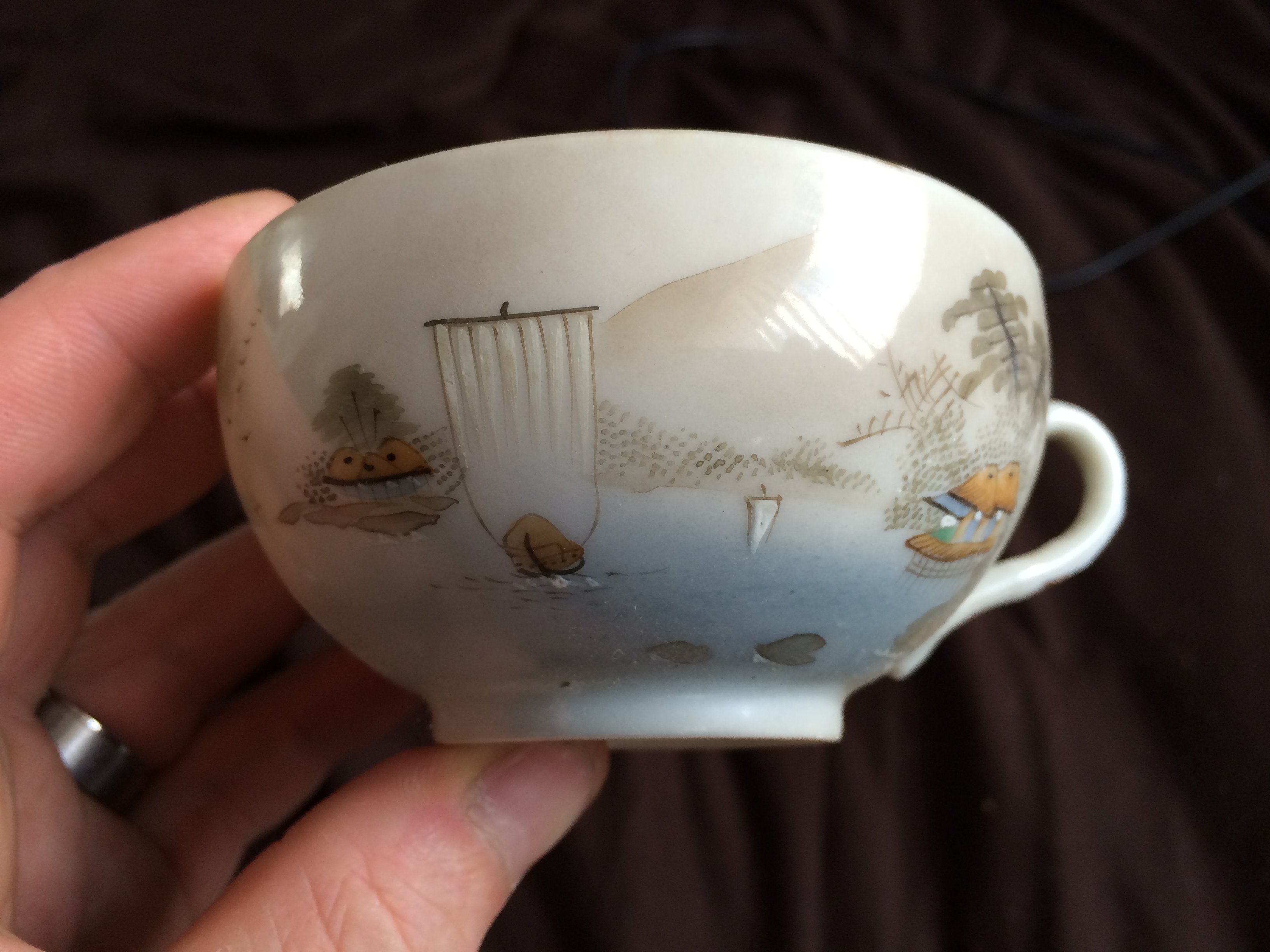 I am looking for more information and a possible valuation on a china tea set that was passed down to me from my great aunt via my Father. I have tried several times to find out more information on the tea set and also a valuation, but have never been able to find the hallmark or the depicted scene on any website.