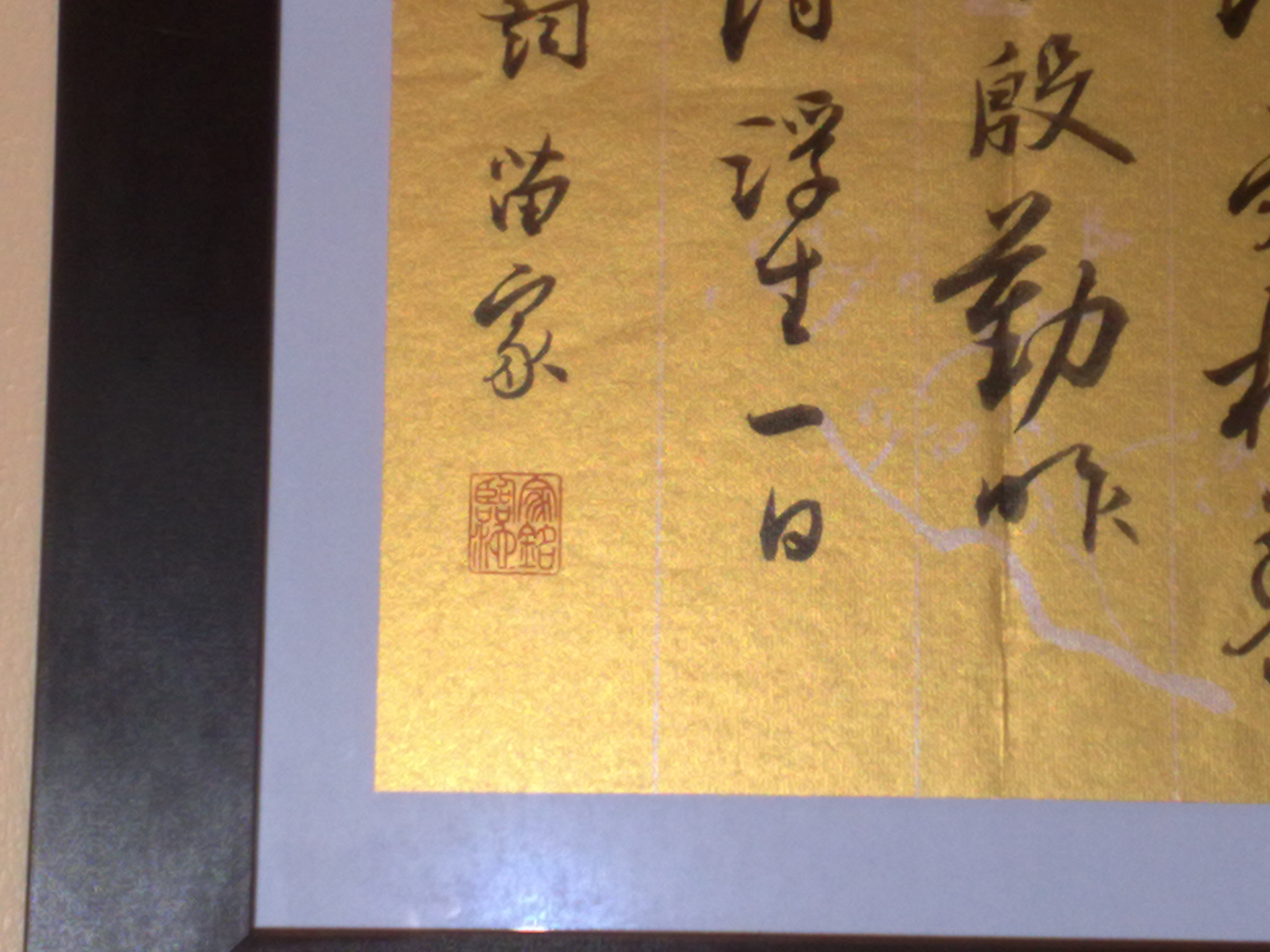 This was given to me as a gift, but was folded.  It was painted by a popular Chinese artist, I'm not sure when, at the opening of a business where the artist had attended for some publicity for the businessman.  It was passed down to the man's son, along with another painting of bamboo (the two paintings were done at the same time), and then given to myself.  I aquired the paintings within the last ten years, and would appreciate any information regarding them.  Pictures of the other painting are available upon request.