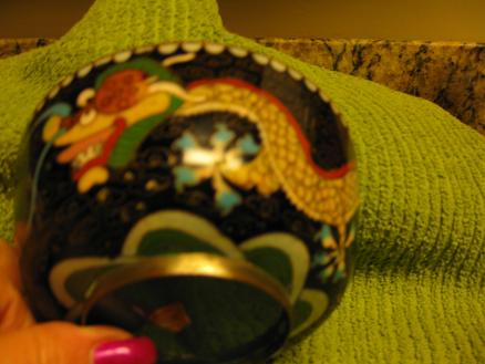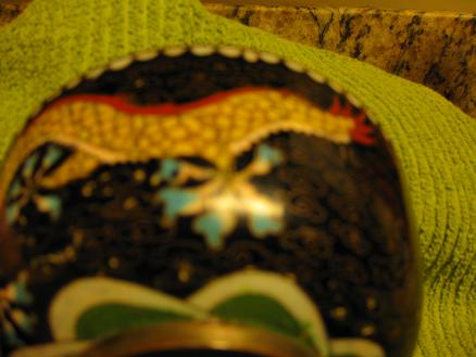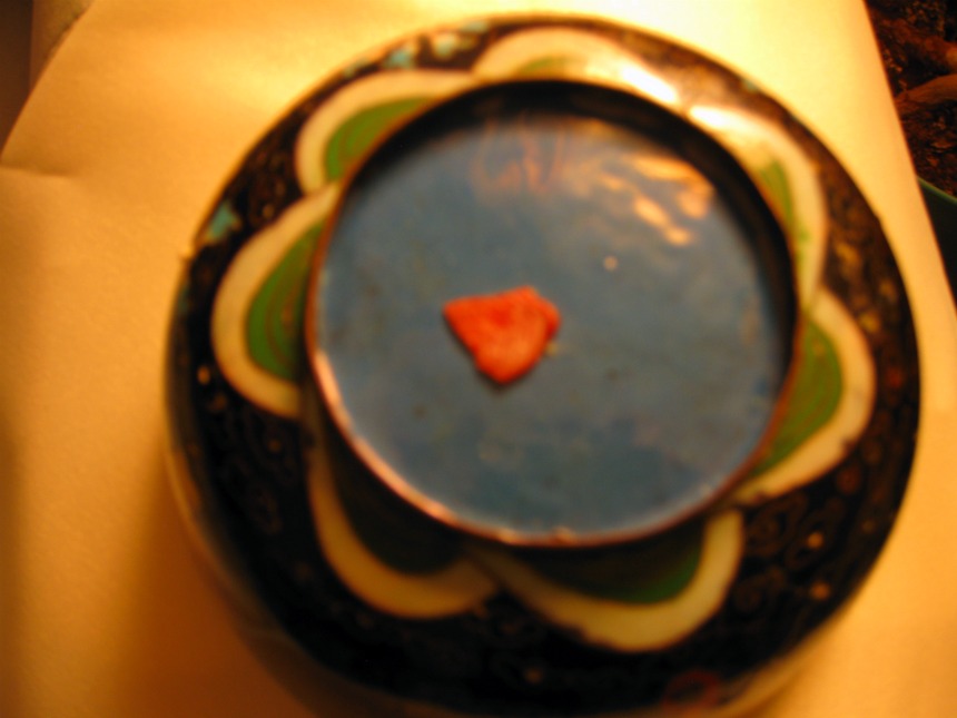 he HAD BEEN COLLECTING FOR YEARS BUT WHEN SHE GAVE IT TO ME SHE SAID SHE DID NOT KNOW HOW OLD IT WAS BUT THAT IT HAD A DIFFERENT MARK ON IT BECAUSE IT WASN'T STAMPED. INSIDE THE BOWL THE BLUE GLAZE HAS 4 SMALL AREAS WHERE THE GLAZE HAS COME OFF AND IT LOOKS LIKE RUST UNDERNEATH. IT IS IN GREAT SHAPE BESIDE THAT.