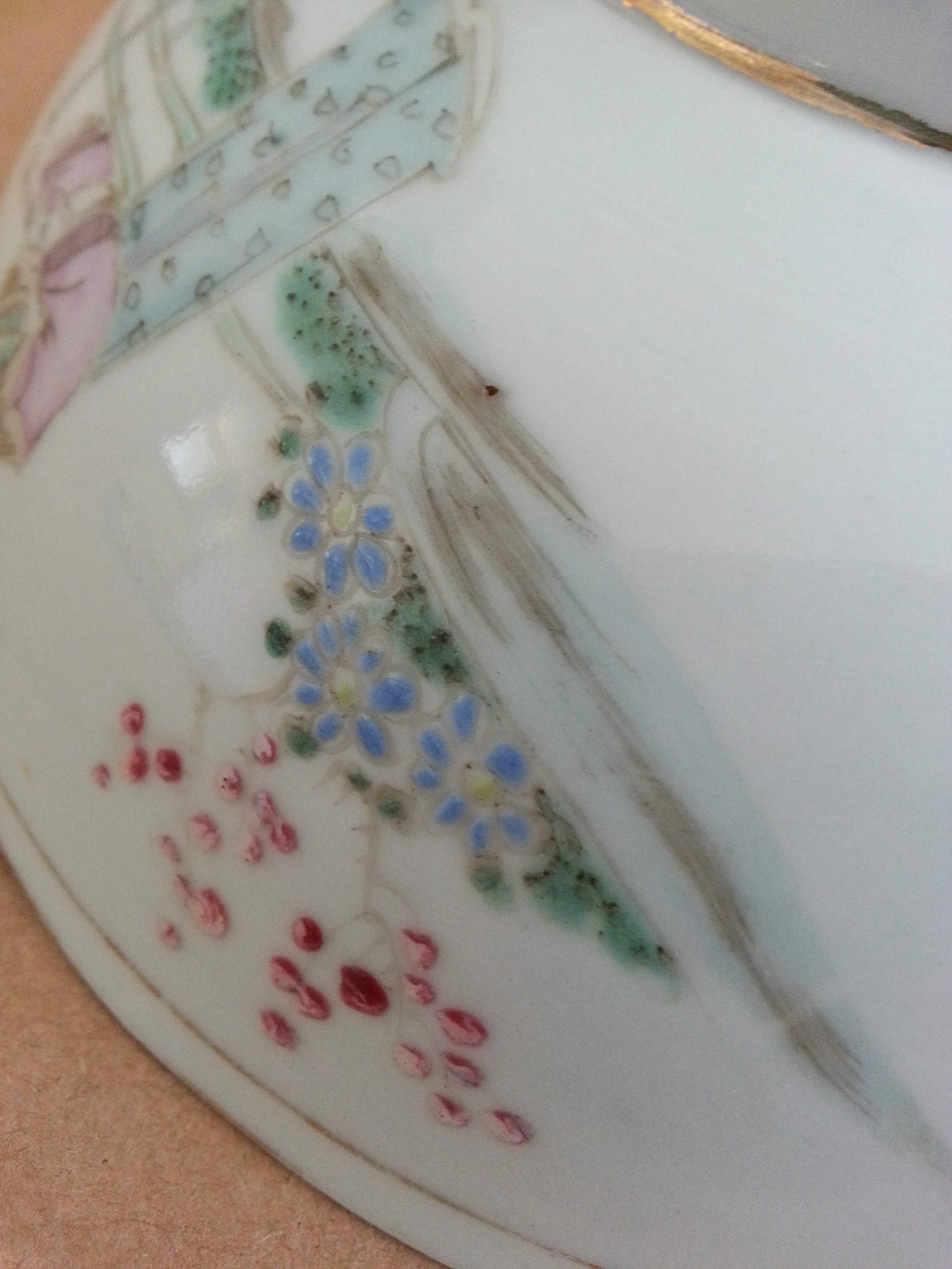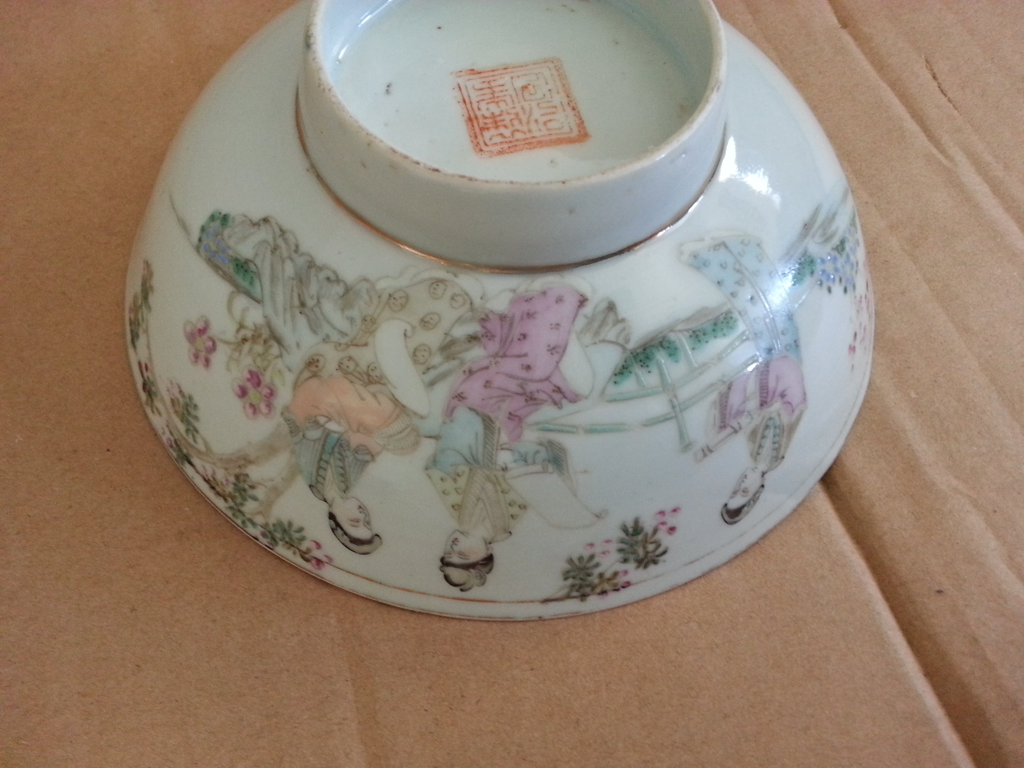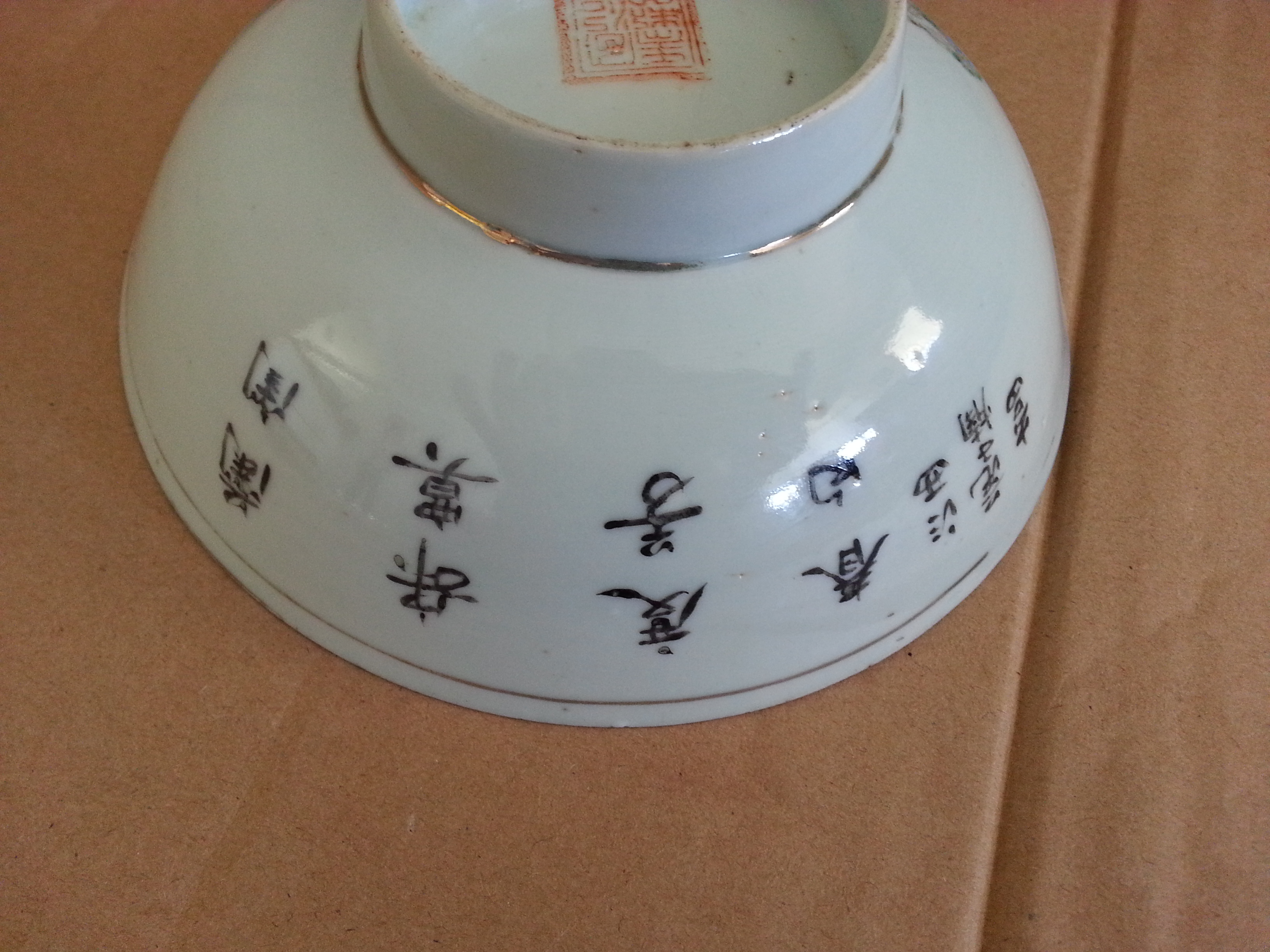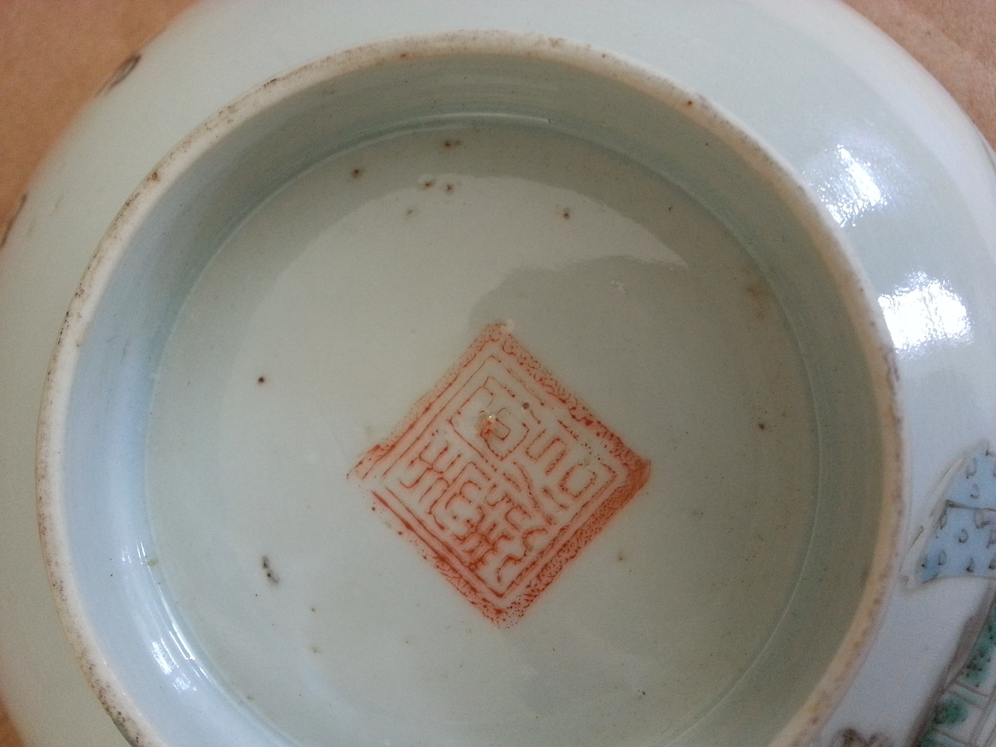 The bowl is about 3 inches deep and 6 inches in diamiter. The read seal make seems to say Tongzhi Nian Zhi.