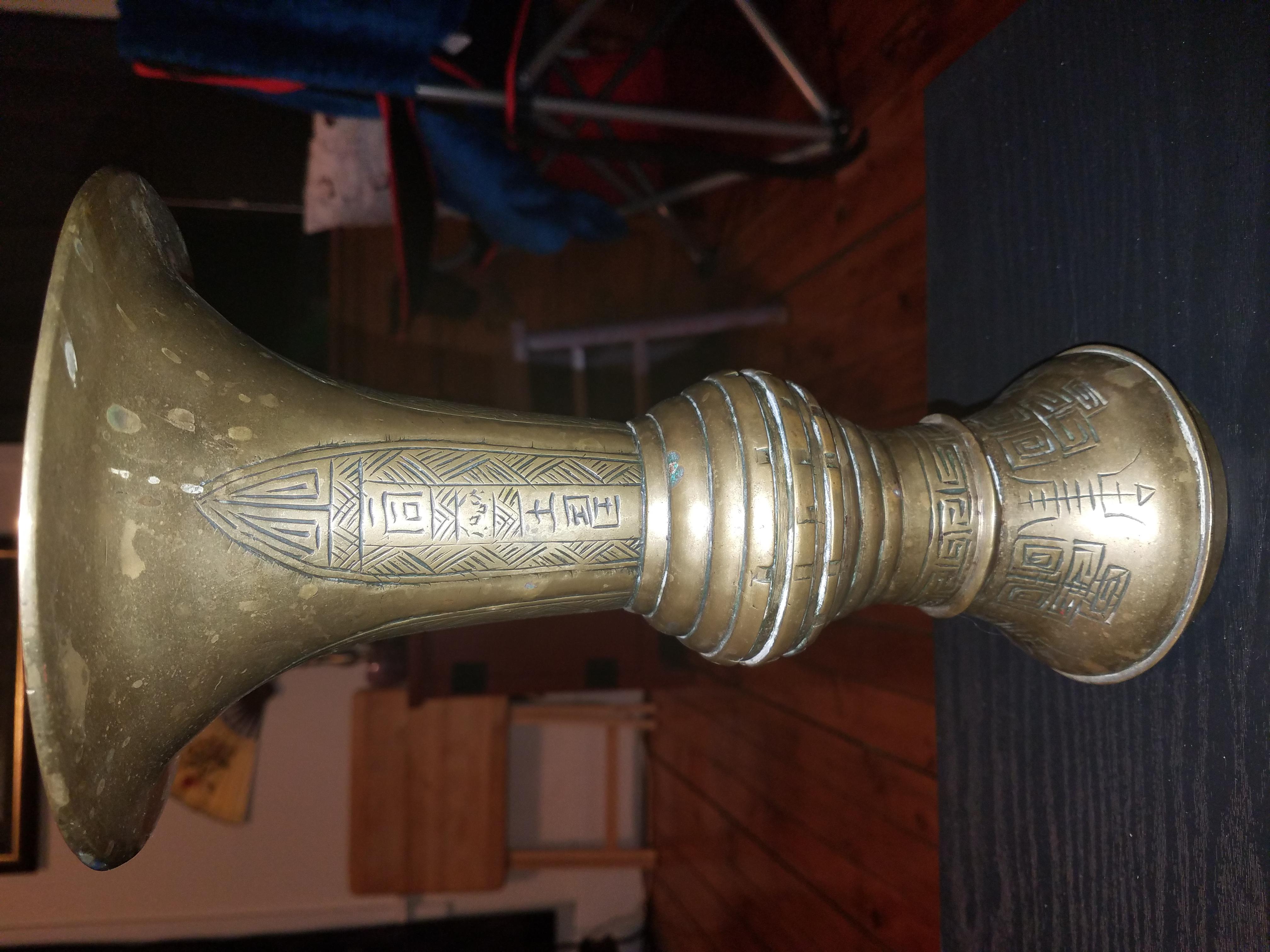Chinese vase with some patina. No idea where to start to identify value. It has some weight to it which I hope means some material value at least.