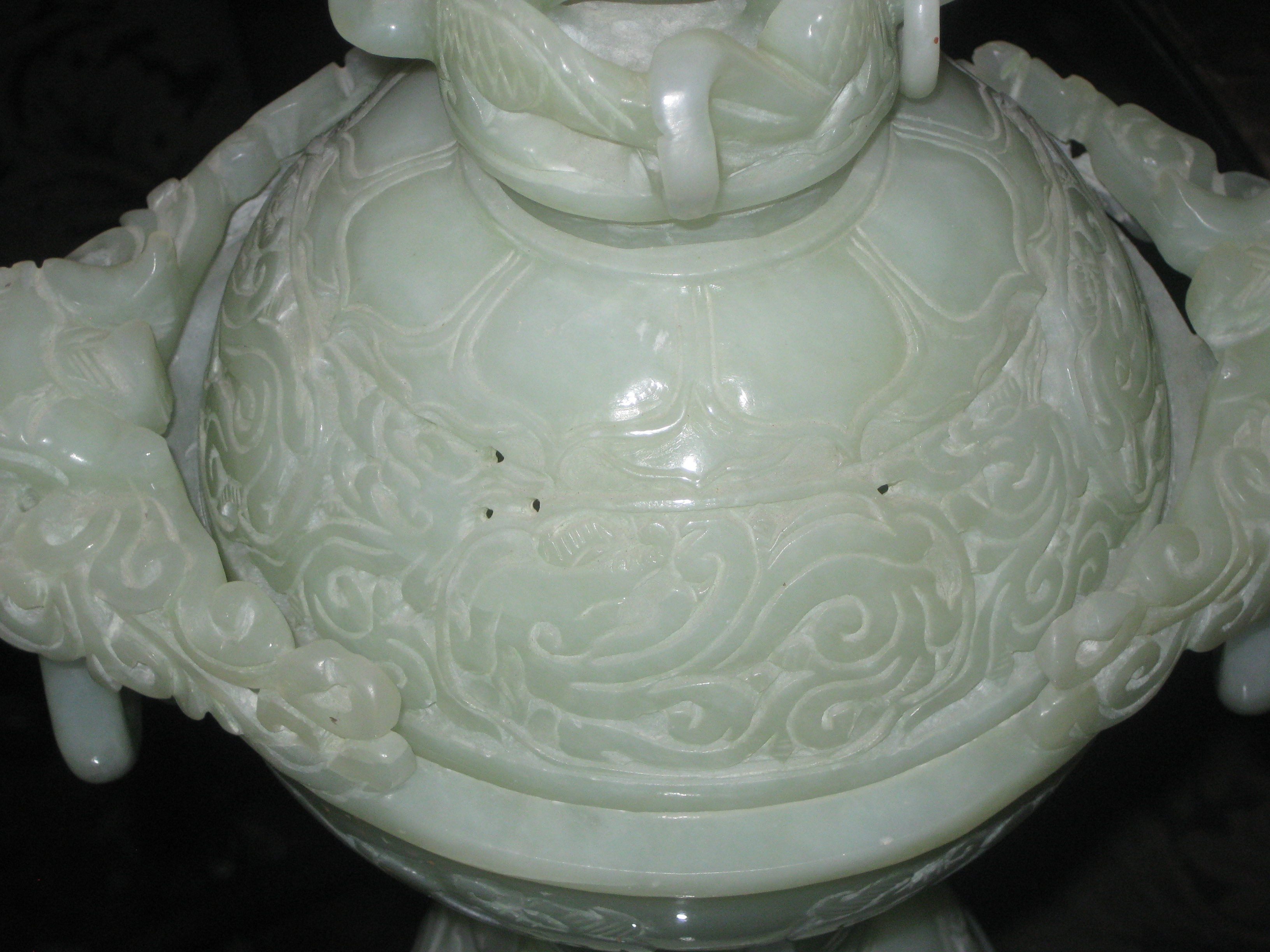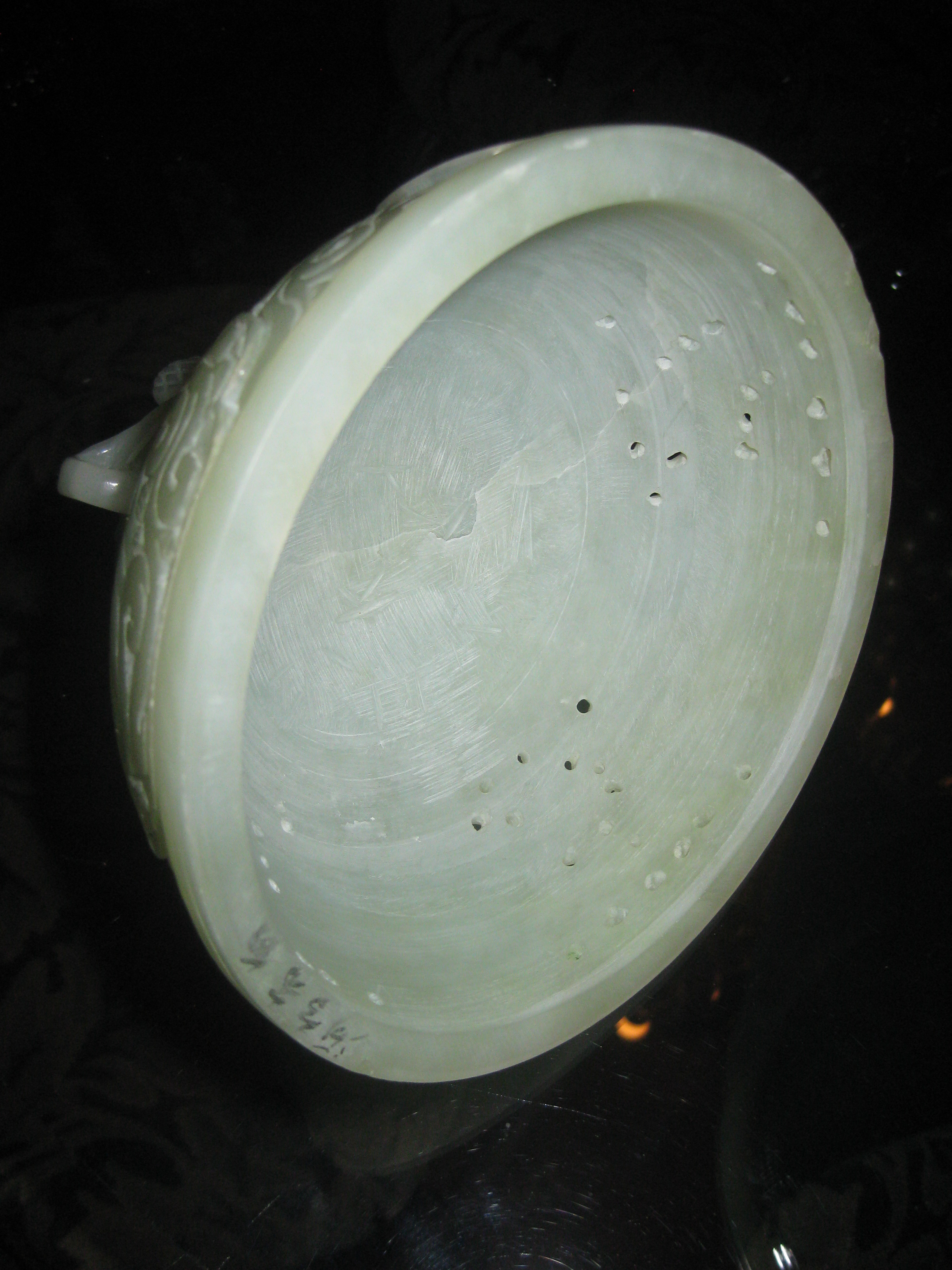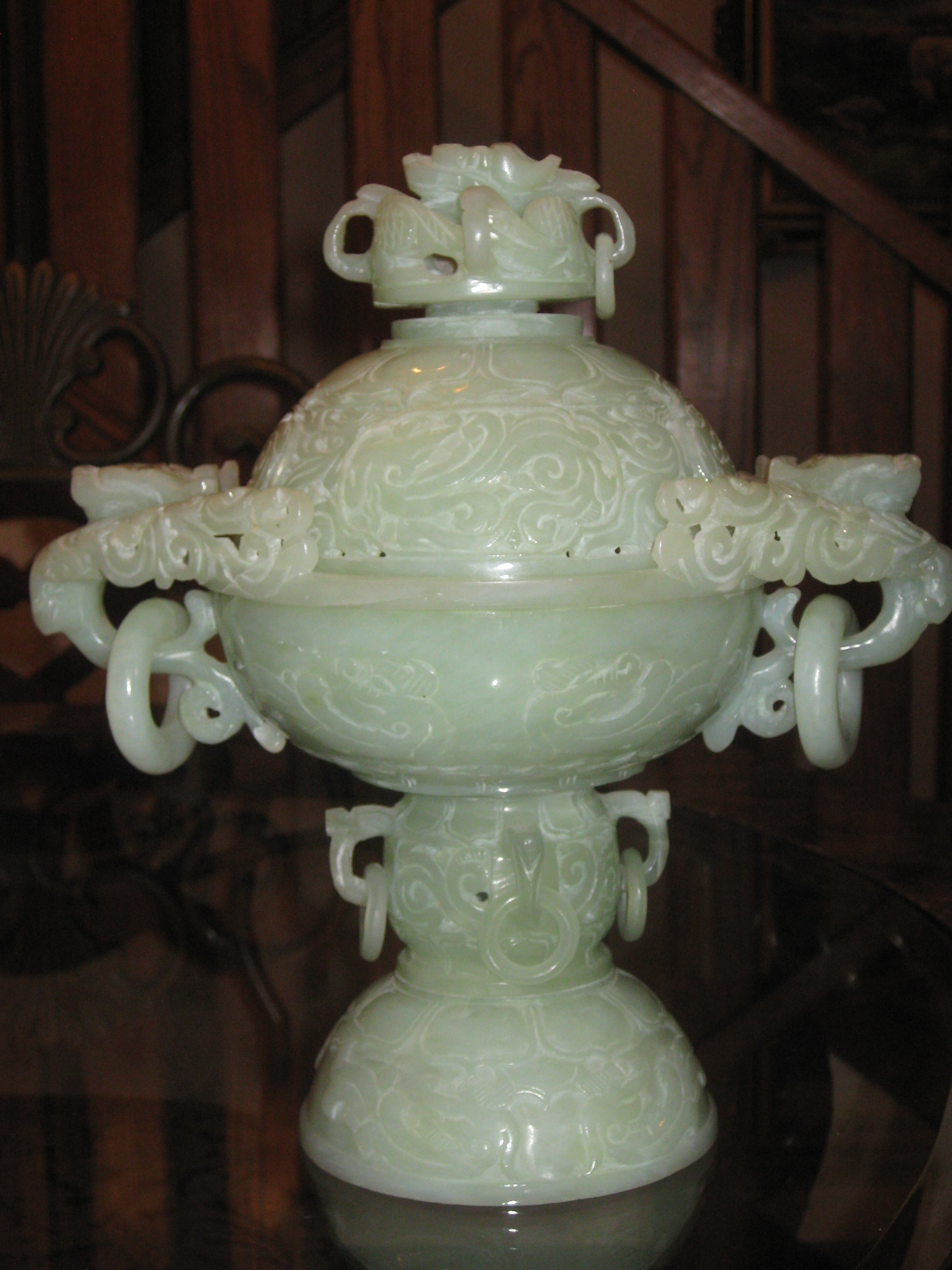 chinese jade censer, it has two parts.  There is a signature under the lid. There are several rings around it both on the top and bottom.  On antique road show had one go through and it was worth a fair amount.