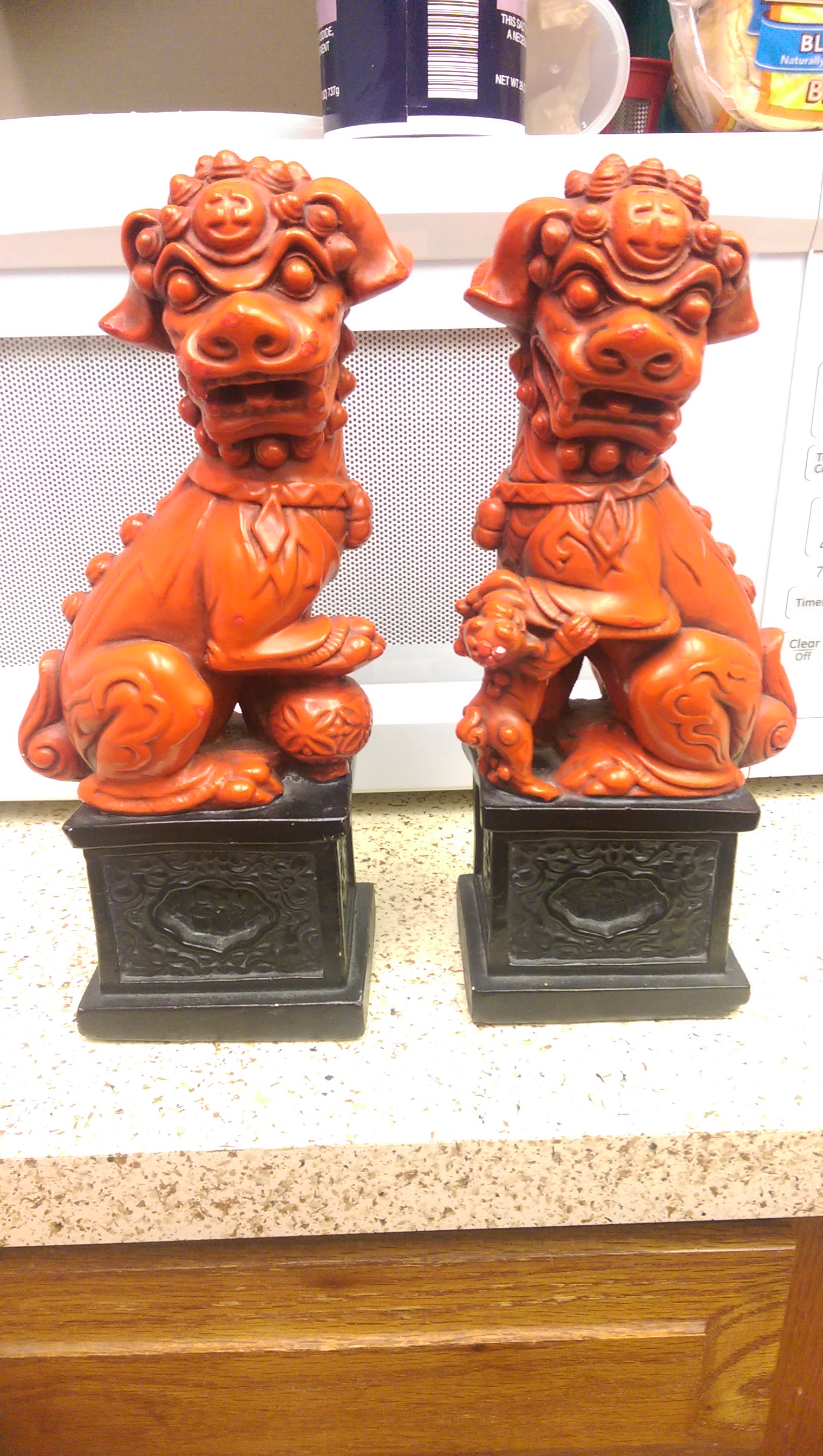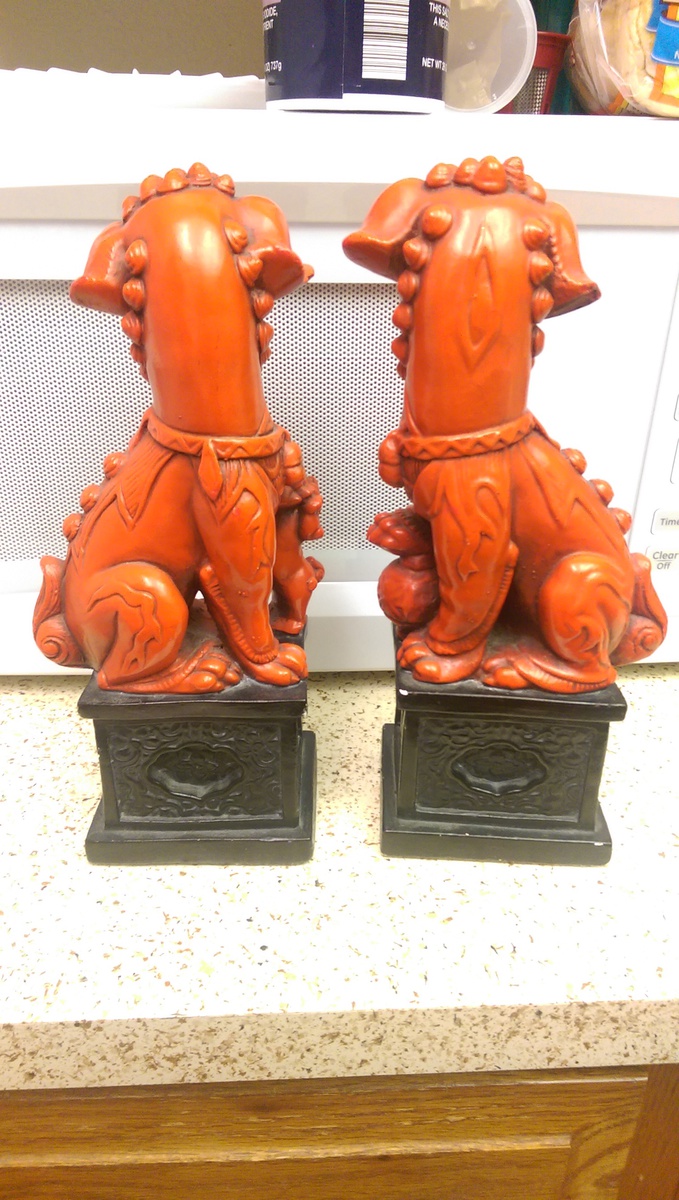 Received as a gift from neighbor - not sure of the history. Has a mark on side of each statue says: marwal ind inc. It is made of some type of chalkware.