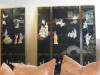 Oriental (japanese?) room divider. 76" tall, 4 panels 20: wide, 85 pounds. Heavy dark wood. No designs on back, each panel has a different design on front in the middle section. Shown in photos. Some repair work has been attempted in small places. One or two feet are missing. Top and bottom areas appear to be all the same design. lots of dragons all over design. The way it is carved, there are a lot of angles in each cut that really highlight it when light strikes.