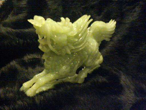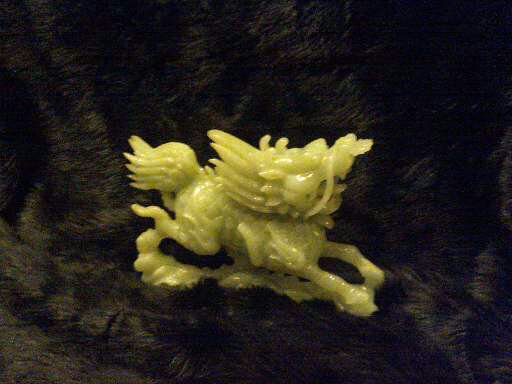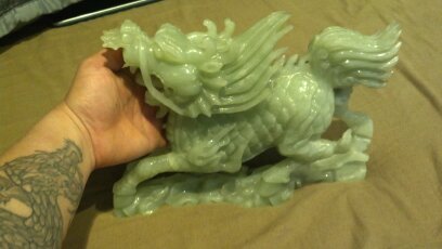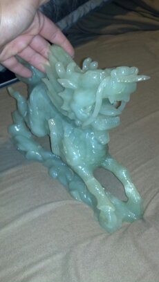This jade dragon statue is said to be over 400years old and from one of the dynasties. Not sure which at the moment, hoping some one can tell me. it weighs approx. 10/12lbs. It has no distinguishing marks or inscriptions . what you see is what it is. No chips or anything either. Some one said the type of dragon it is couls help in tracking its origin. Its a horse dragon . If you look closely it has hooves and legs of a horse....Thats all I got really