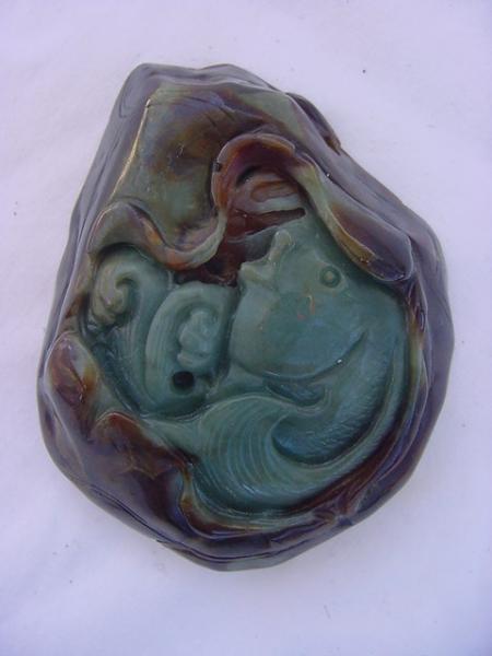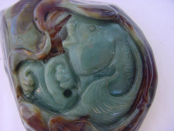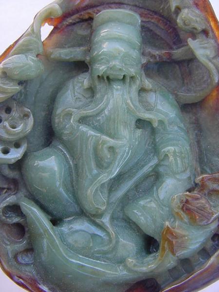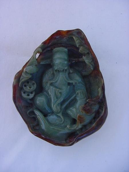 Hello, I recently bought this carved Jadeite/Nephrite on Ebay.The seller stated it is from the 1700's. I believe the laughing character is a symbol of longevity/good luck. I'm unable to find any similar pieces and would like any info possible on determining it's age,worth & material used,whether it's Jadeite or Nephrite.Any help is much appreciated.