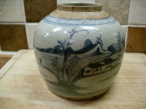 Looking to identify my  jar. ie age, origin, possible value. Have been told it is chinese, possible 18th or early 19th century. Condition is good with no cracks or chips. tiny circular hole in base approx half millimetre in size.