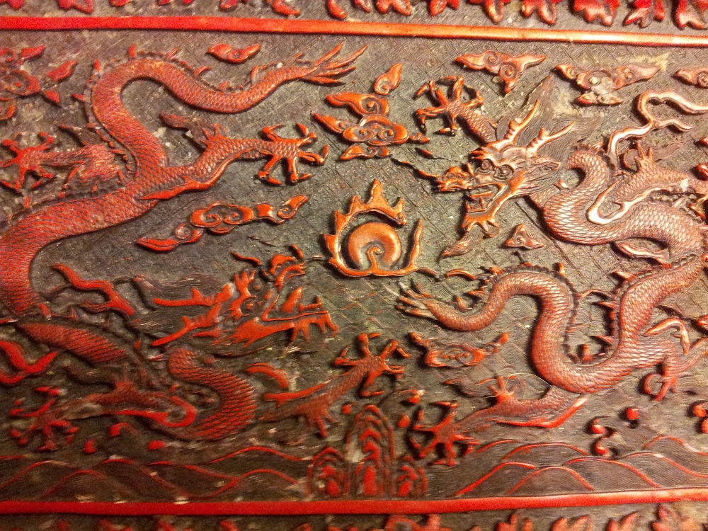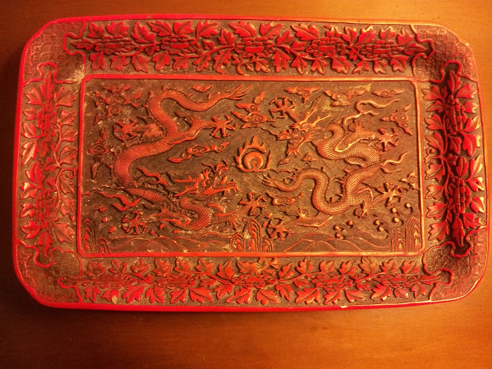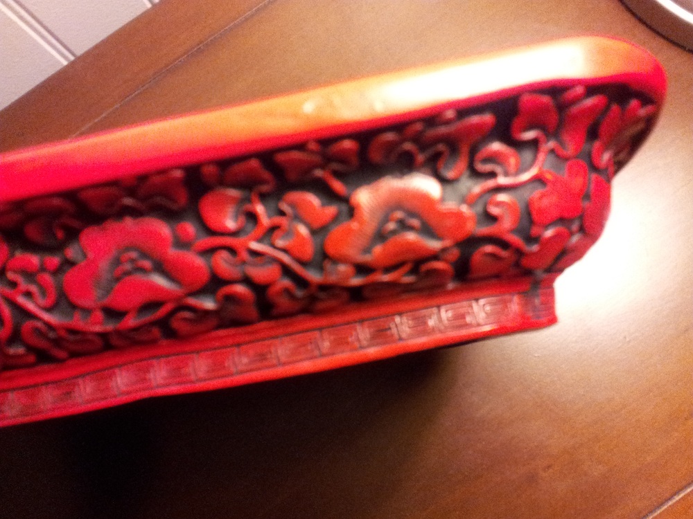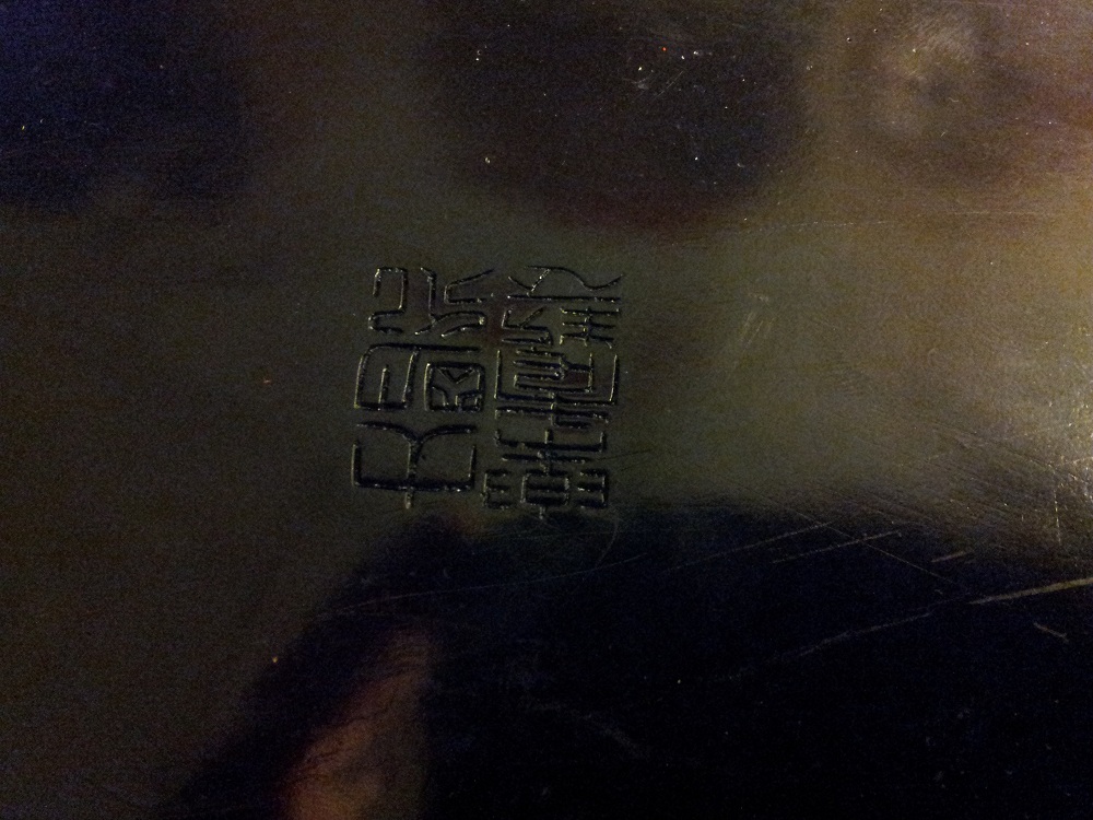Black and red Chinese lacquer dish with insignia stamp on bottom. I don't know anything else about this.... Got it in a yard sale.