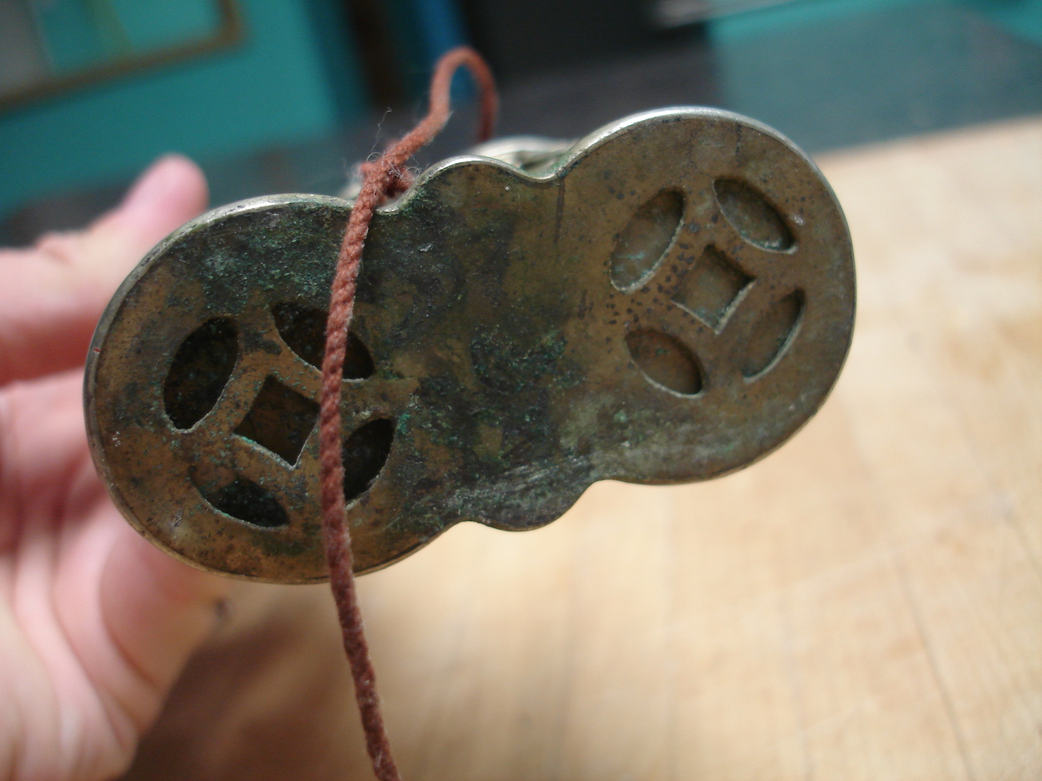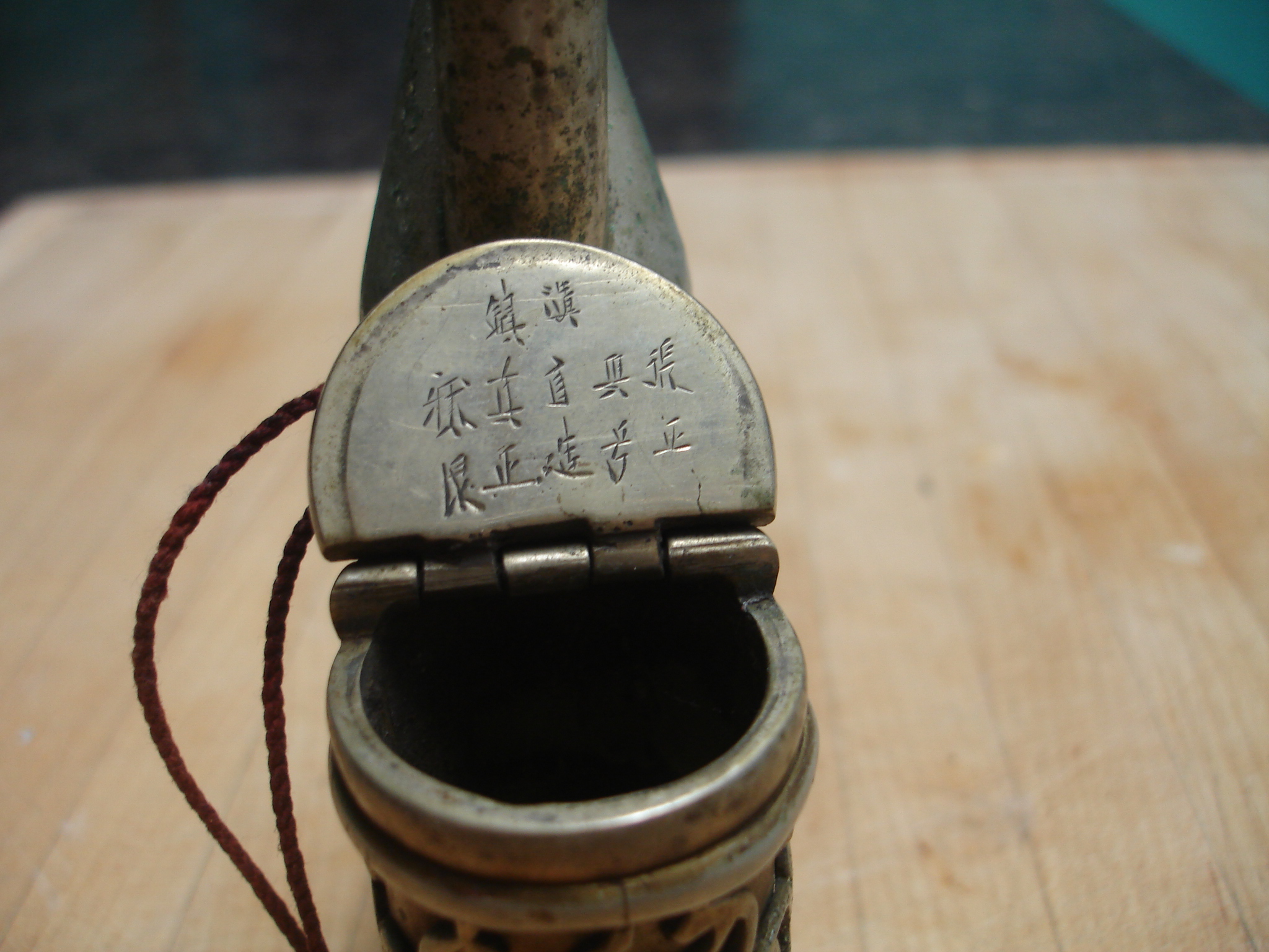 Metal pipe of some sort. Has an inscription in chinese I think.