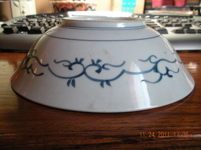 Some paint around the rim is worn, it is hand painted with what I think is a devil face in the bottom of the bowl.