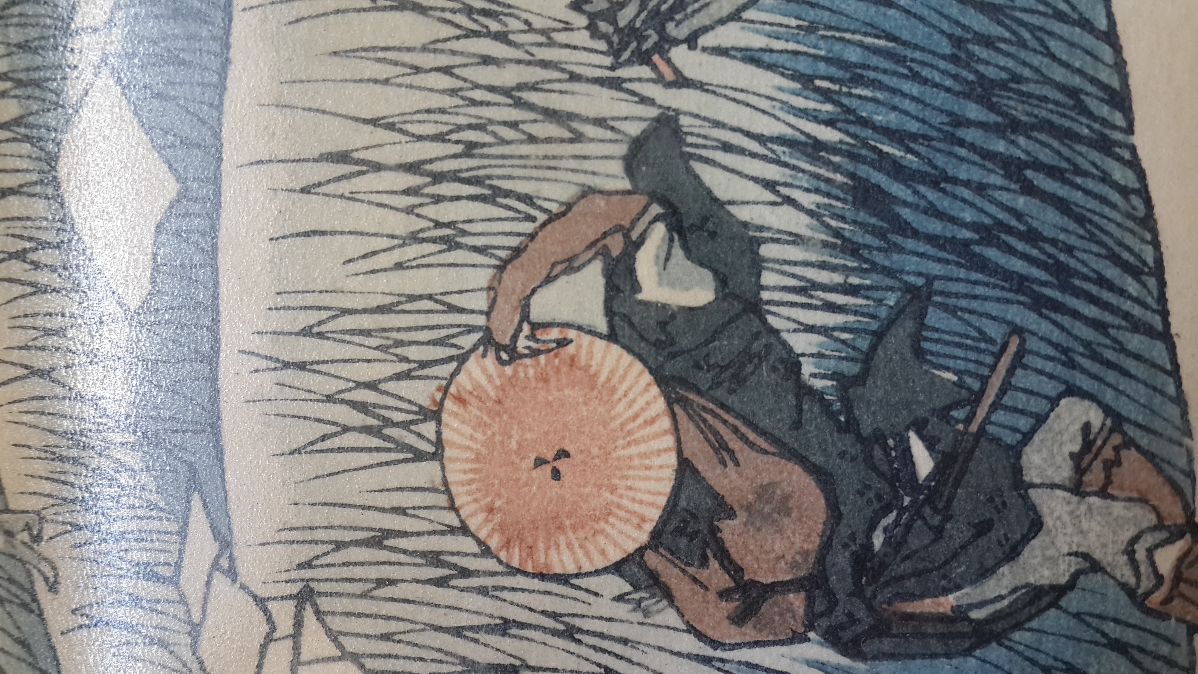 what is the condition? Is the medium paper? is it completely glued or partially taped on the edges to the board? Was it framed? How did you acquire, from whom and when? Can you take a photo of the back of the actual print?