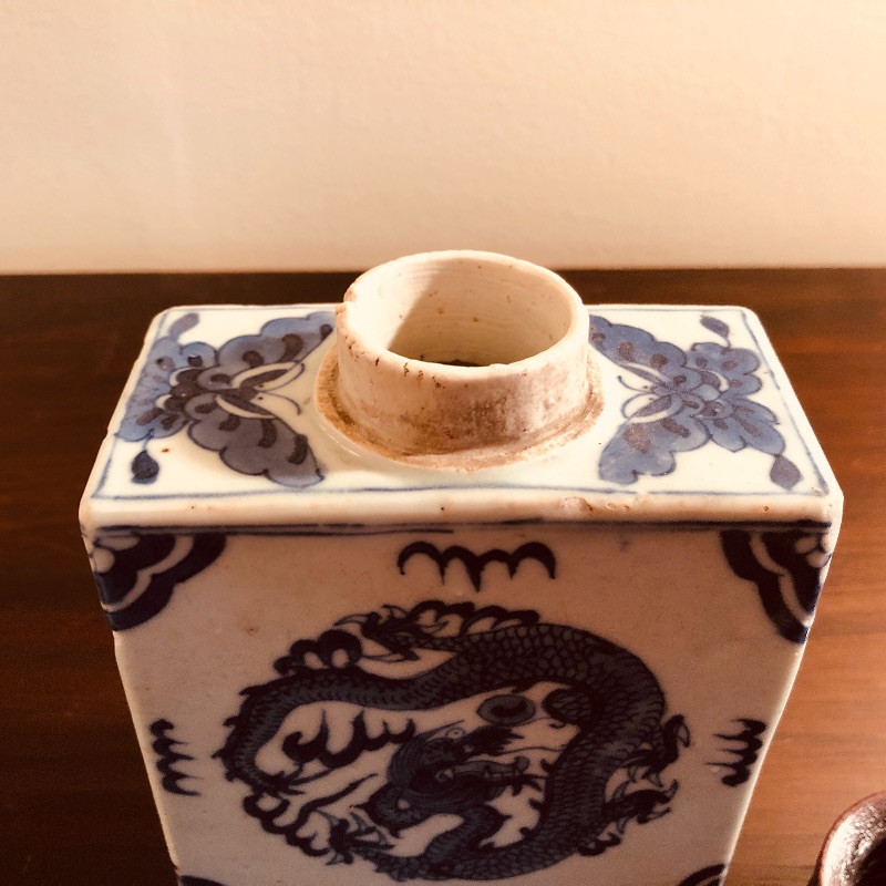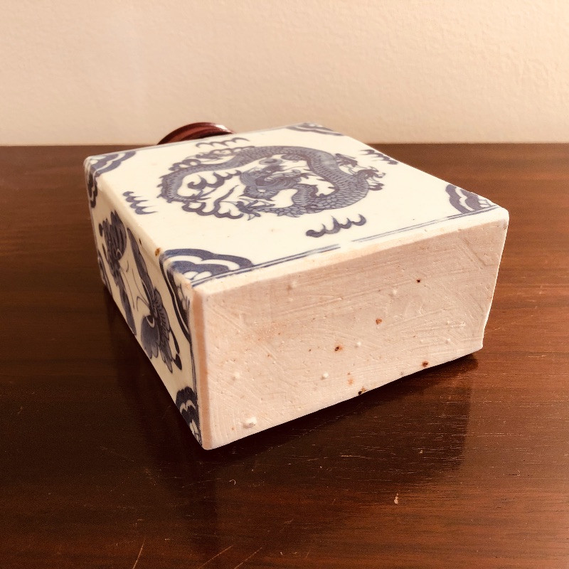 Antique porcelain flask with wood top. Not sure about the provenience of this piece. Very nice decorative item, in overall great condition. Not sure about its retail value.