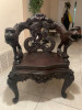 Chinese redwood chair that is diamond shape seating to be used in corners.