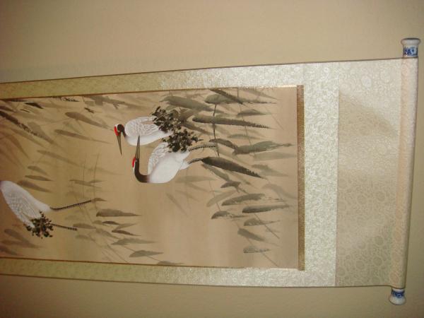 painted on the rice (Xue) paper. Mounted on Silk with porcelain cylinder at the end of it