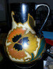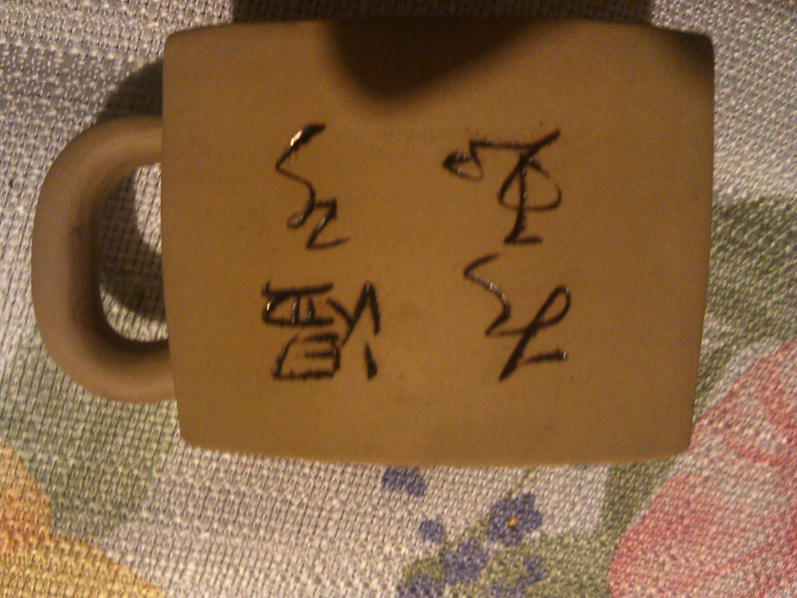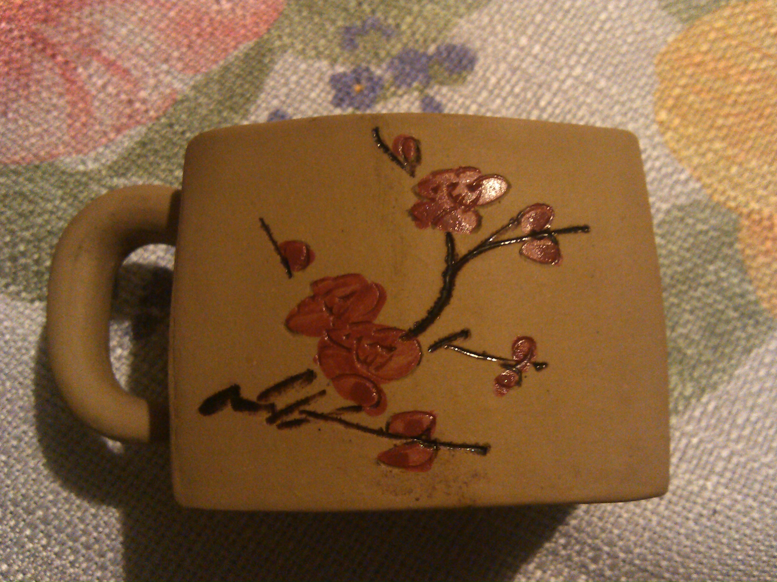 A apparant vintage chinese pot with incriptions on front and side a red flower and a square mark bottom