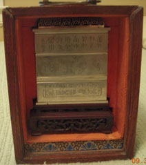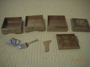 The item was obtained in Burma (Myanmar) sometime during WWII. I would like to know its value but mostly I want to know what it is. Many people guess incense burner but I don't think so. I think it might have been used to mix medicine or in some religious ceremony. I was told the writing that goes around the box are poems. I think the wooden box it is in was maybe made at a later date to hold it and carry it around. If the writing on the box could be interpreted that might give a clue to its purpose.