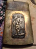 Antique, Chinese, China, Ashtray, Match Holder?, Pair of Slippers and a Scoop, Enamelled Bronze, Colors teal, gold, orange, green, blue.