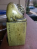 Having trouble attaching pics. It appears to have a lion and lioness kissingwith a couple of coins and possibly a shield upon their backs. They are perched upon this square base, and there is text on two side of the base and chinese symbols/designs on the bottom. The bottom is stained with blue ink from previous use. Please email me if you want to see pics. My email addy is [email protected]