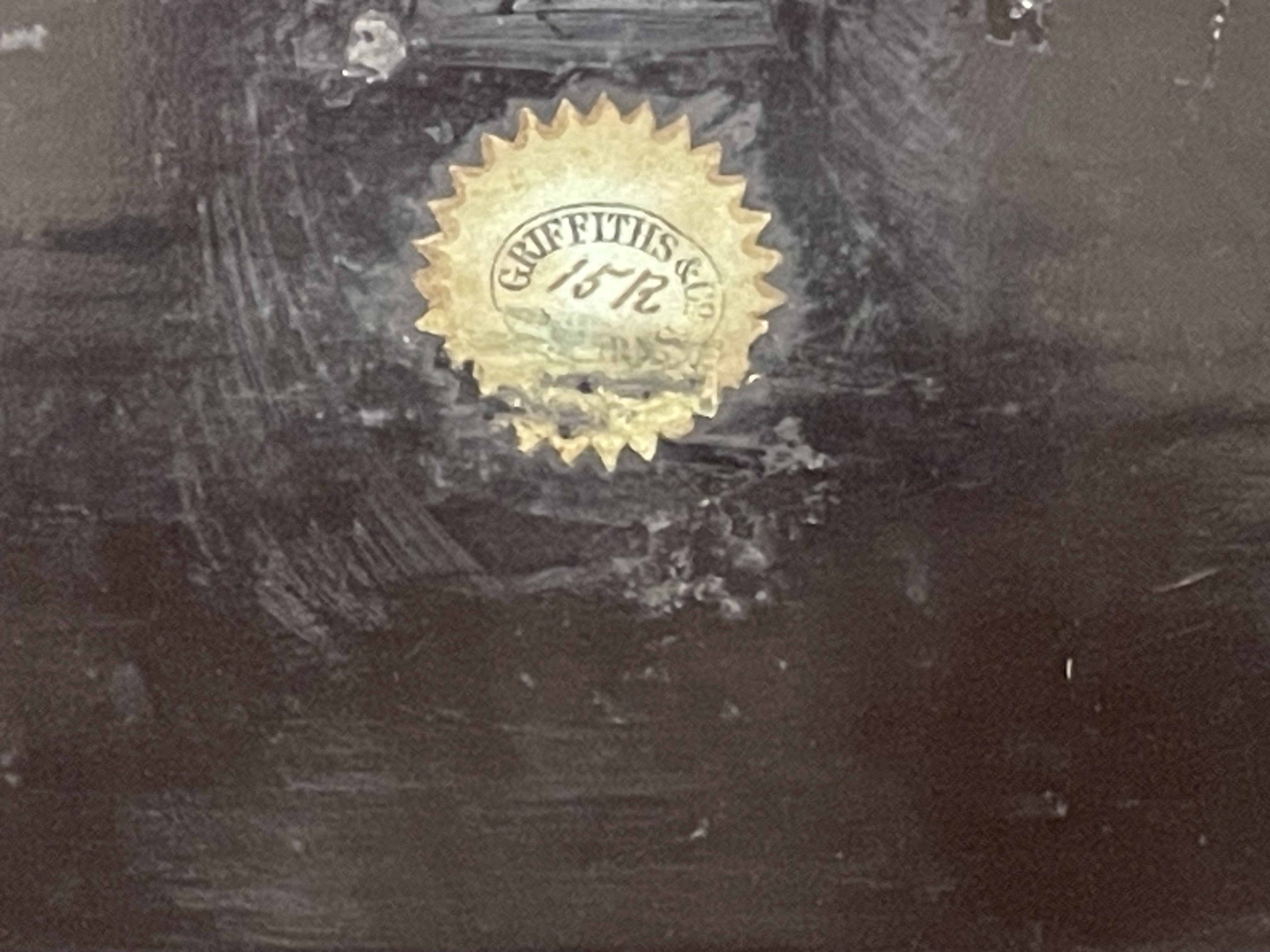 Tea caddies like this were essential during the 18th and 19th centuries for preserving the freshness of tea, a highly valued commodity. The decoration on this box reflects the influence of Chinese artistry, which catered to European tastes during the height of the tea trade. Griffiths & Co, as indicated by the seal, was likely a distributor of fine goods, and their name may link this piece to the export trade era.
