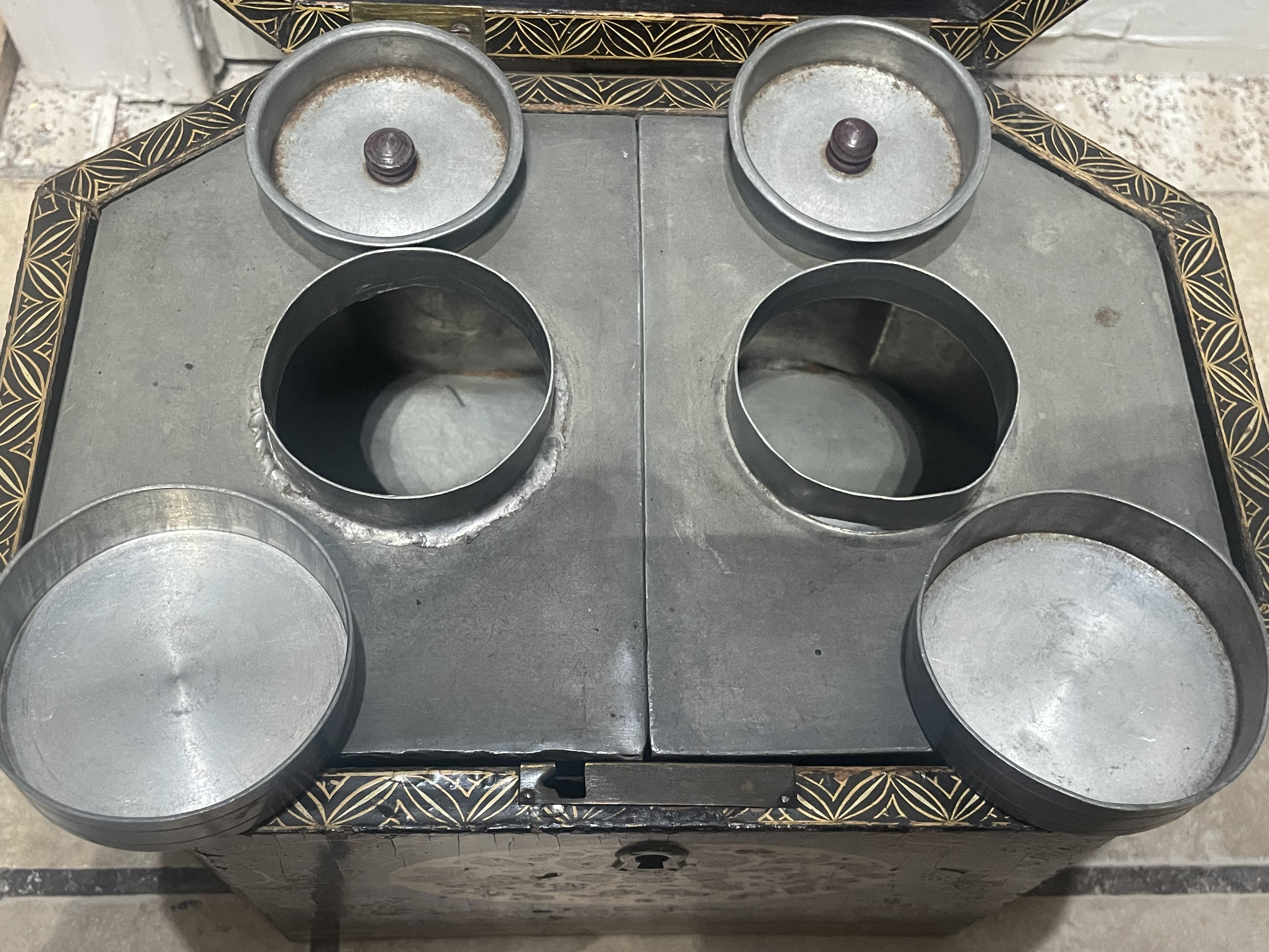 This tea box appeals to collectors of Chinese export art, tea enthusiasts, or those interested in historical trade artifacts.