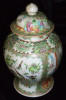 this is a vase/jar of chinese origin,white porcelain,with brown and gold accents,colorful flowers,no cracks , nicks,or chips in it