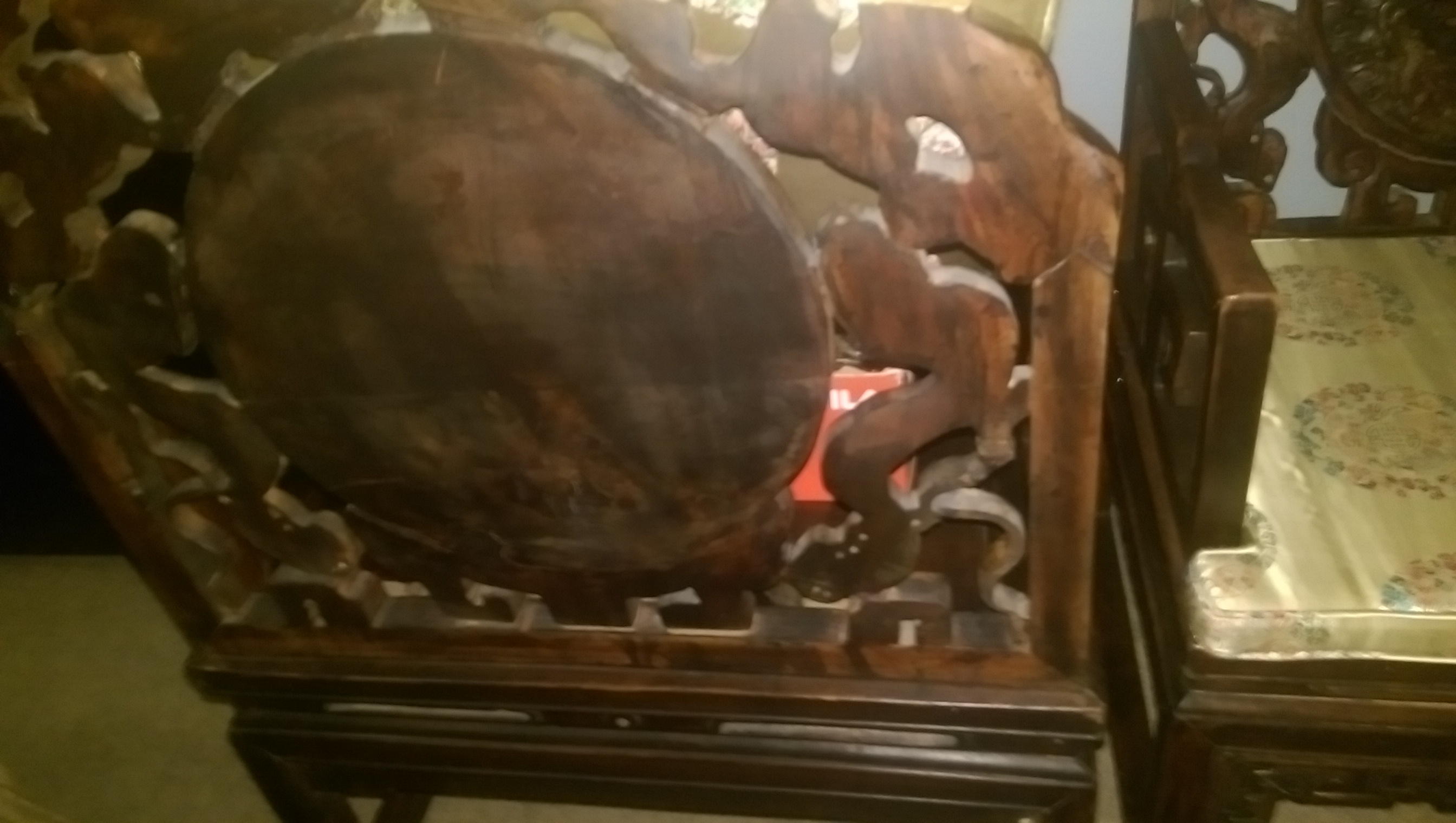 I appreciate any info anyone can offer. I bid against a Chinese couple known for buying antiques and bringing them back to China to sell. I paid just over $1000 for the pair. They reminded me of two "emporerers chairs" I had the prvelidge to sit in at the private collection of a famous Taiwanese artist's son's private collection, so I bid aggressively even though I was not sure what I was buying!