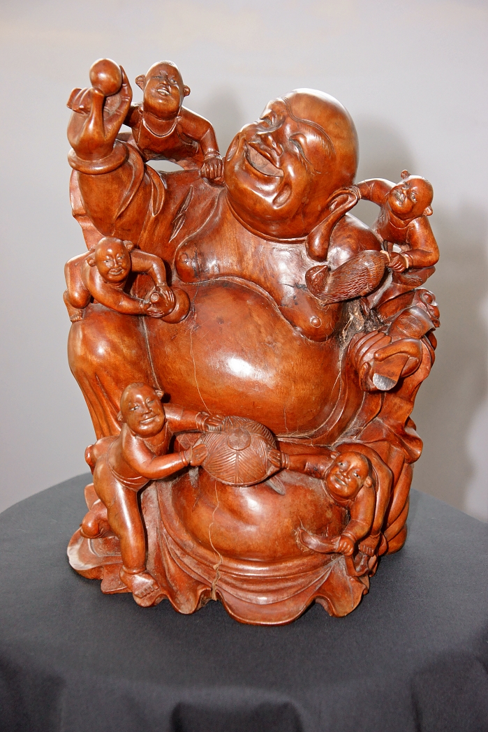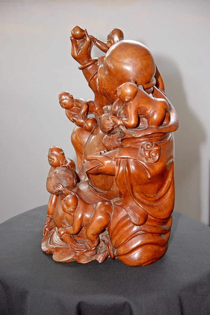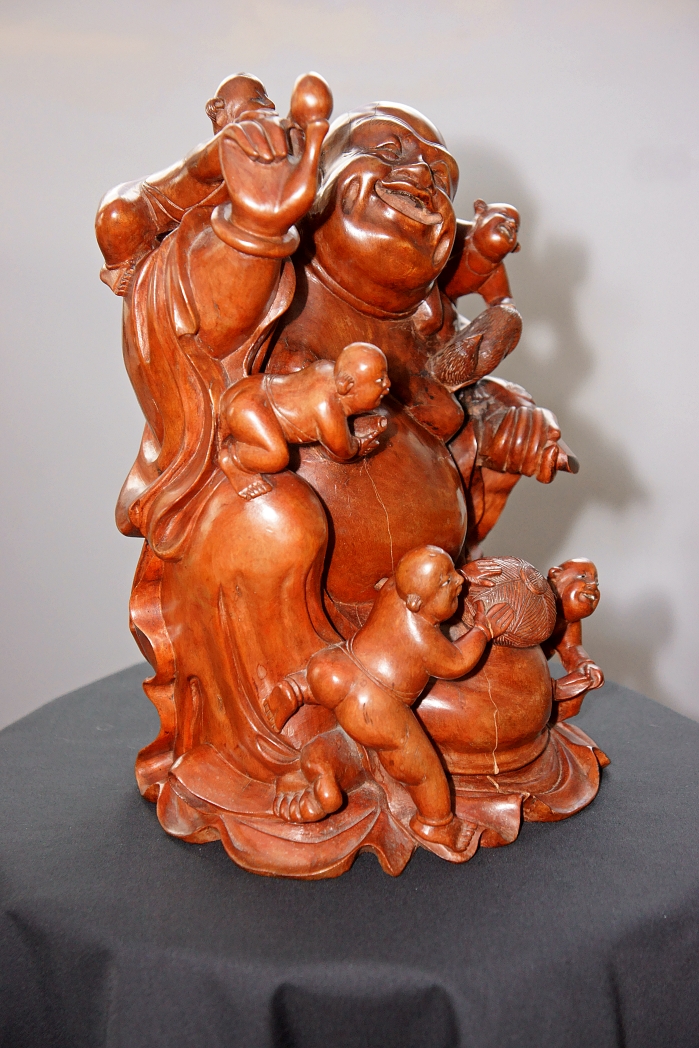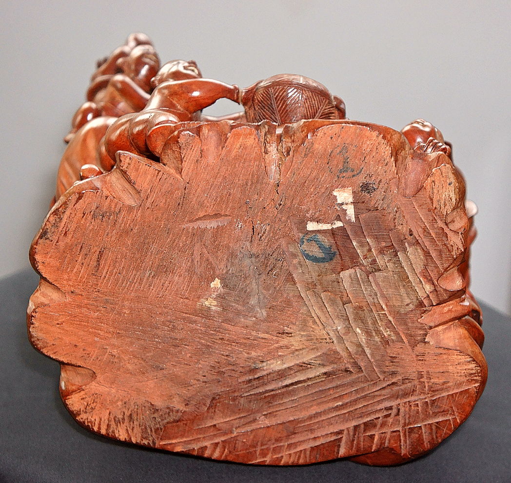 Asian hardwood carving ... 11.5" tall ... stamped on bottom " 1 " in circle ... age & type of wood unknown.