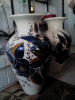 The only thing that I can say, is that it appears to have the artists hand signature.  If there is any way that you could get the signature authenticated then you would be able to find out about the artist and the work.  Perhaps look into the Gallery Label in PA and go from there, I enjoy researching the arts, especially antiquities..  If I get a chance I might even see if I can find something out about this.  Not trying to get your hopes up, as there ARE many vases floating around..  yet a lot are mass produced and not authentic originals of the original creator.  I'll write back if I find anything out.  I'm no specialist, I simply happen to have a fairly good eye for the arts, and an equal appreciation for them, being an aspiring artist myself.  The latter/lower vase you have listed is without a doubt, a Japanese vase..  the imagery seems to be of Bushi/Samurai of a Feudal period..  an era that could span centuries, yet most likely between the 1400's to the 1800's. I'm not an expert, and, I am only stating that the art is created is depictive of this, not that this is when the vase had been created.  Yet, the vase is old, obviously, it is evident in it's condition.  It could have been made in early to mid 1900's. There was a company in New York as well, that imported Asian Arts, among other countries as well, and it was mostly in the early to mid 1900's that it was known for.   I am curious now, and thus, I am going to find some time to look further into this.  To possibly match up the signature of the artist. The art could be of two fueding clans, or, of  a famous samurai, or of the Genpei war, it could be representative of the Genji and Heike clans.. as this was one of the most popular histories of feuding clans. The armour and colors and their facial hair seems similar to this.  However, again, there were centuries of fuedal wars.  Thus, it could really be representative of any historical event. or.. the artist simply appreciated a specific era or clan or samurai and wanted to display it in their art.  Anyway, if, I find any info about it, I will definitely let you know..