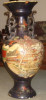 The only thing that I can say, is that it appears to have the artists hand signature. If there is any way that you could get the signature authenticated then you would be able to find out about the artist and the work. Perhaps look into the Gallery Label in PA and go from there, I enjoy researching the arts, especially antiquities.. If I get a chance I might even see if I can find something out about this. Not trying to get your hopes up, as there ARE many vases floating around.. yet a lot are mass produced and not authentic originals of the original creator. I'll write back if I find anything out. I'm no specialist, I simply happen to have a fairly good eye for the arts, and an equal appreciation for them, being an aspiring artist myself. The latter/lower vase you have listed is without a doubt, a Japanese vase.. the imagery seems to be of Bushi/Samurai of a Feudal period.. an era that could span centuries, yet most likely between the 1400's to the 1800's. I'm not an expert, and, I am only stating that the art is created is depictive of this, not that this is when the vase had been created. Yet, the vase is old, obviously, it is evident in it's condition. It could have been made in early to mid 1900's. There was a company in New York as well, that imported Asian Arts, among other countries as well, and it was mostly in the early to mid 1900's that it was known for. I am curious now, and thus, I am going to find some time to look further into this. To possibly match up the signature of the artist. The art could be of two fueding clans, or, of a famous samurai, or of the Genpei war, it could be representative of the Genji and Heike clans.. as this was one of the most popular histories of feuding clans. The armour and colors and their facial hair seems similar to this. However, again, there were centuries of fuedal wars. Thus, it could really be representative of any historical event. or.. the artist simply appreciated a specific era or clan or samurai and wanted to display it in their art. Anyway, if, I find any info about it, I will definitely let you know..