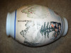 Chinese or Japanese vase with drawings of Oriental characters and very well painted.